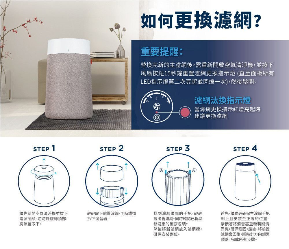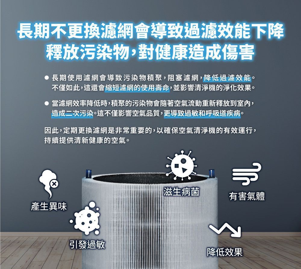高效微粒濾網,有效去除小至PM0.1懸浮微粒