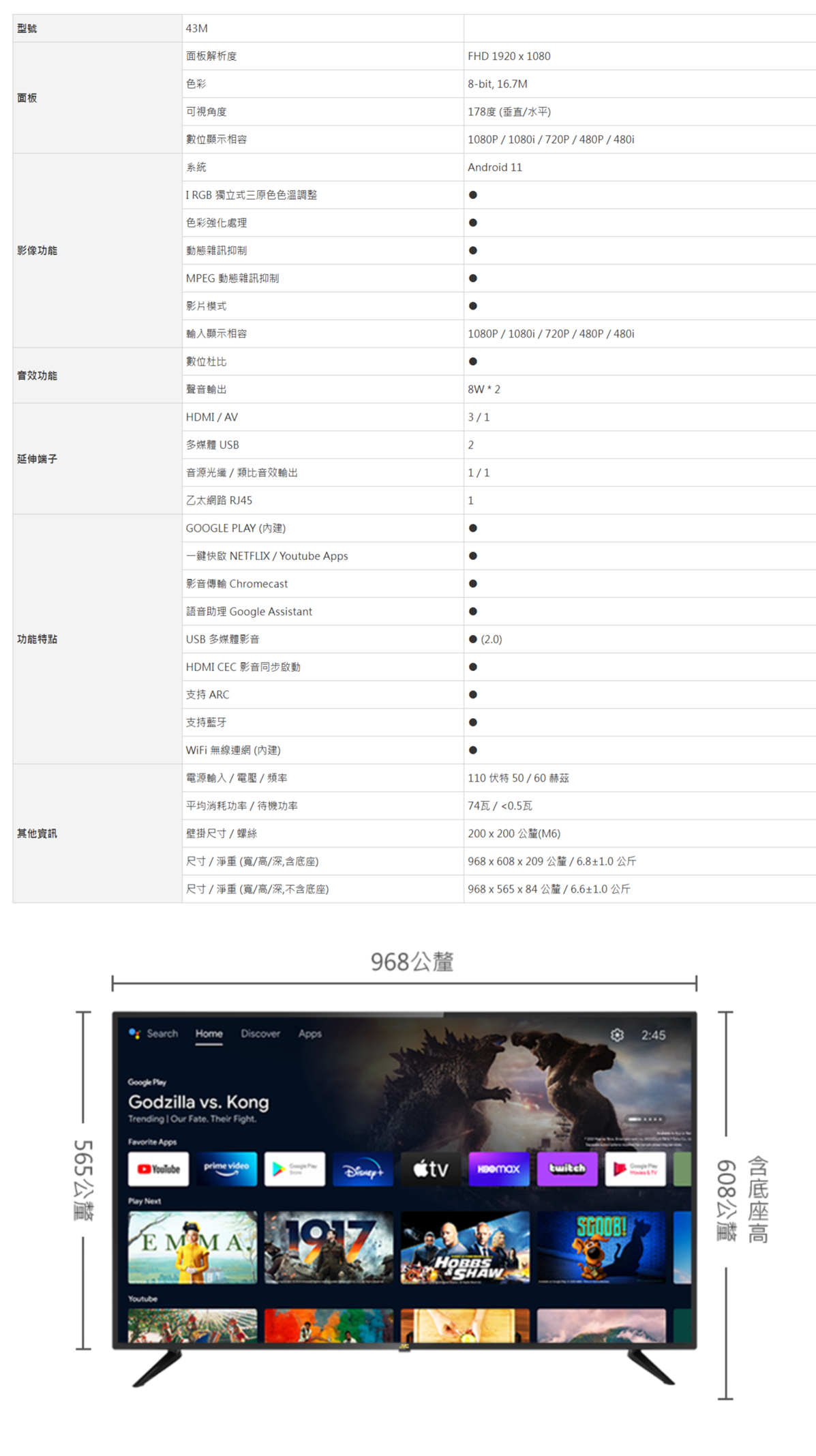 內建 GOOGLE PLAY、NETFLIX、YOUTUBE
