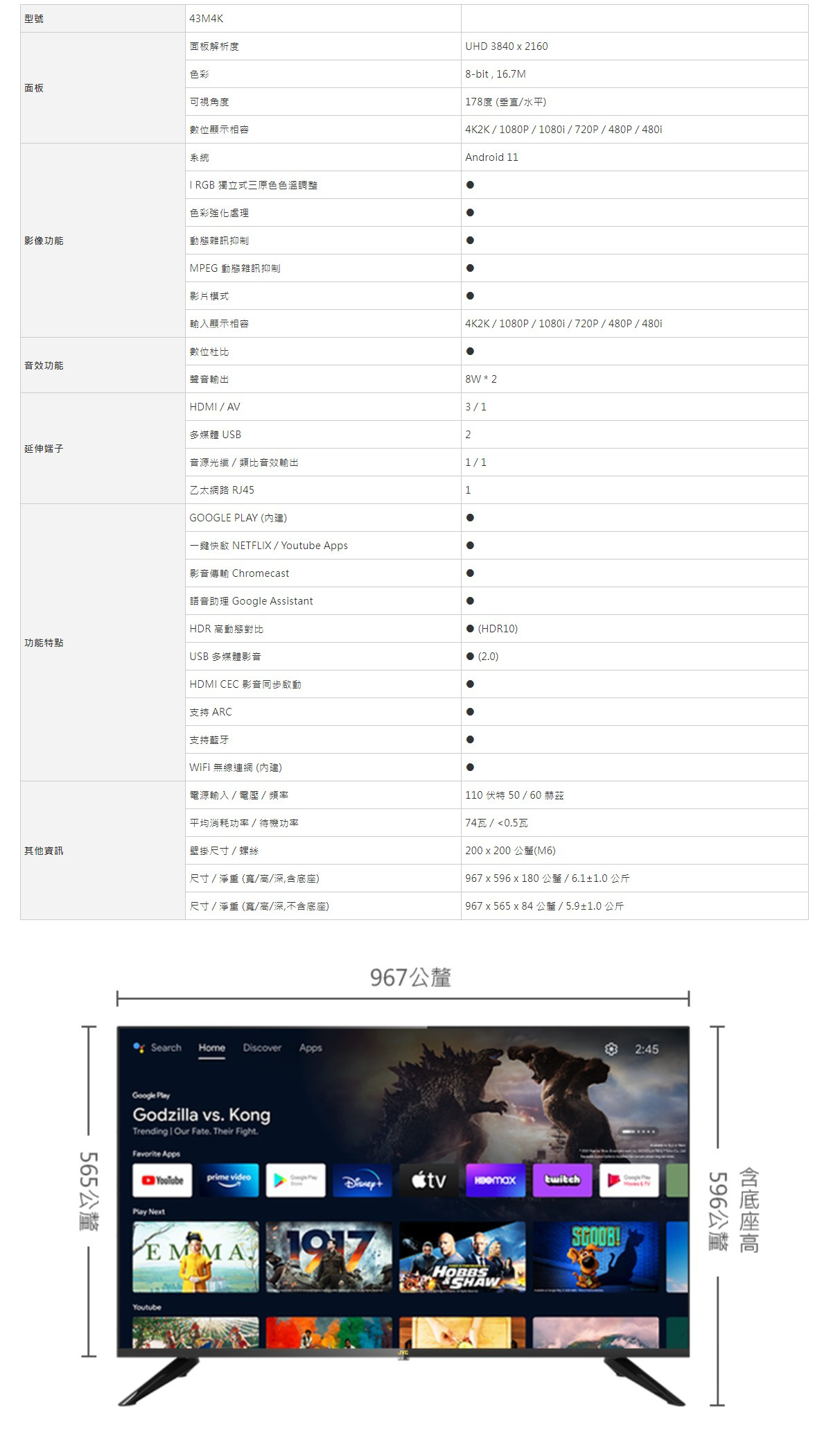 內建 GOOGLE PLAY、NETFLIX、YOUTUBE