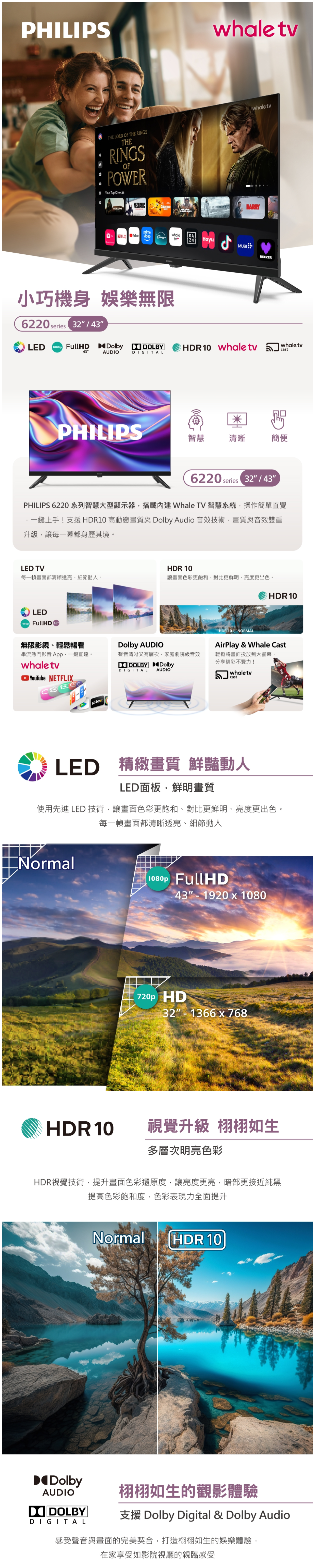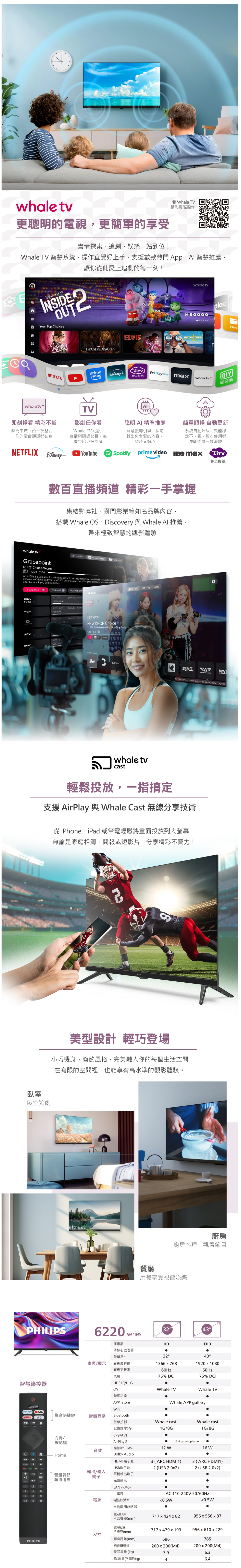 PHILIPS 飛利浦 43吋 FHD聯網 Whale TV 液晶顯示器(43PFH6220)