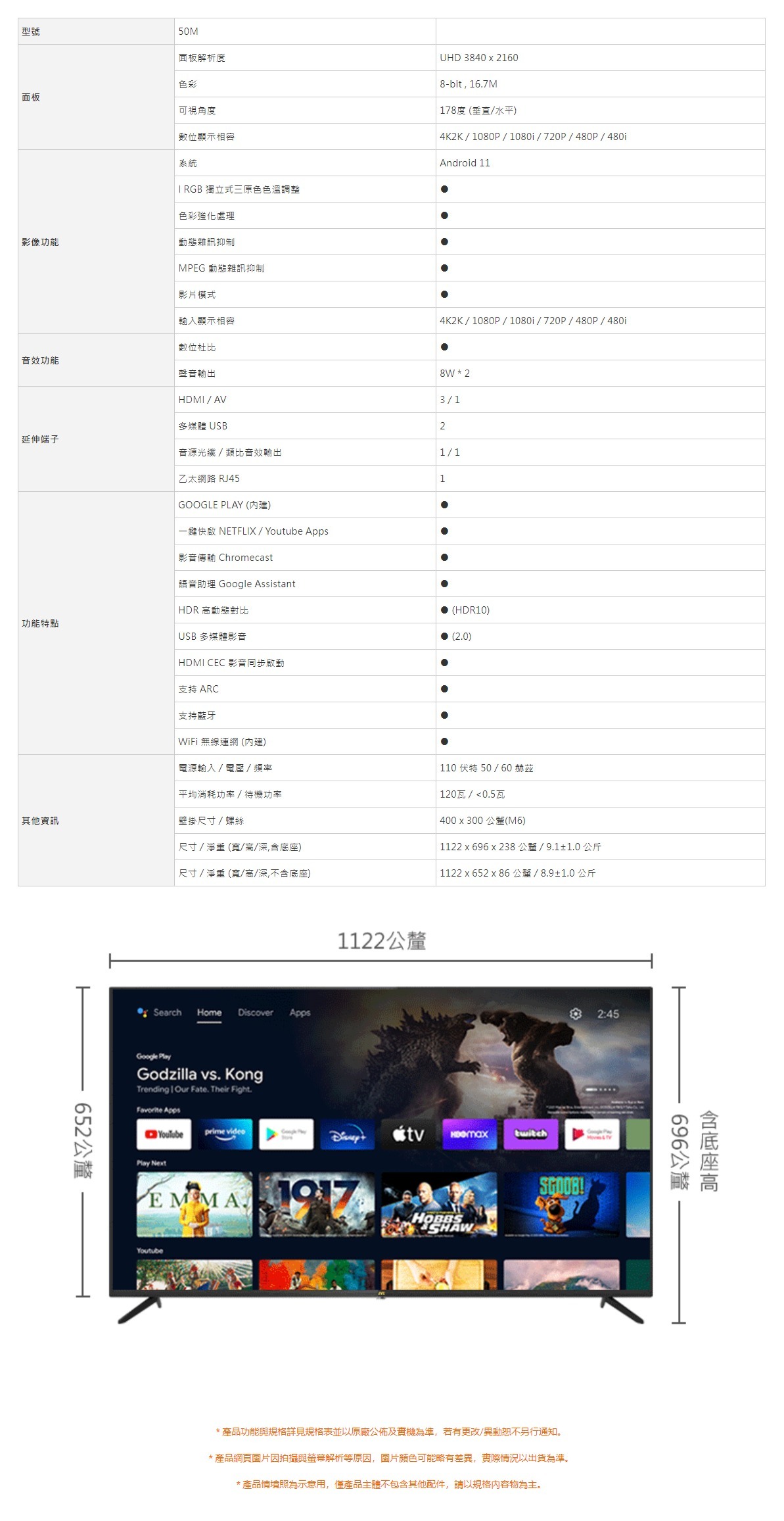 內建 GOOGLE PLAY、NETFLIX、YOUTUBE