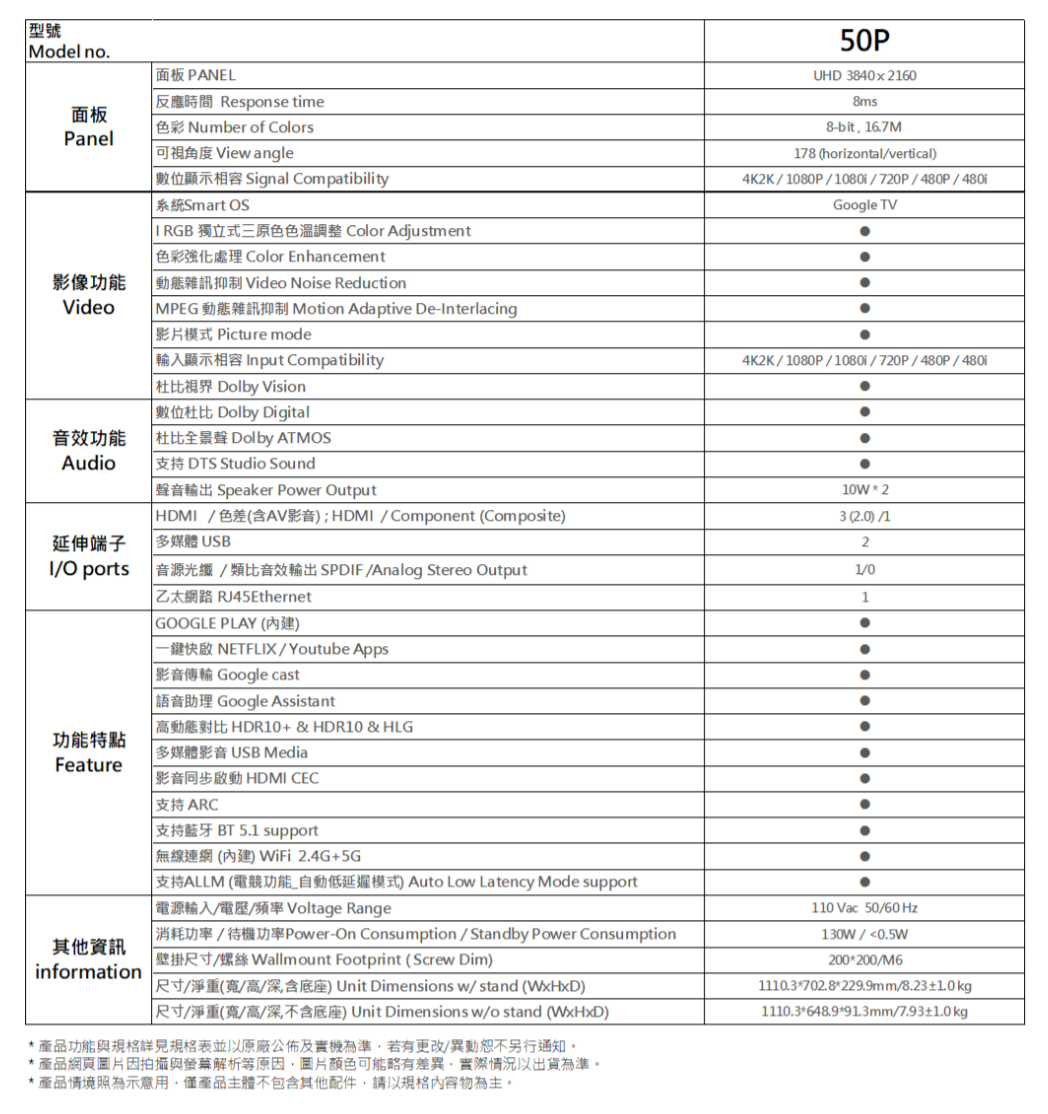 解析度支援:4K2K / 1080P / 1080i / 720P / 480P / 480i