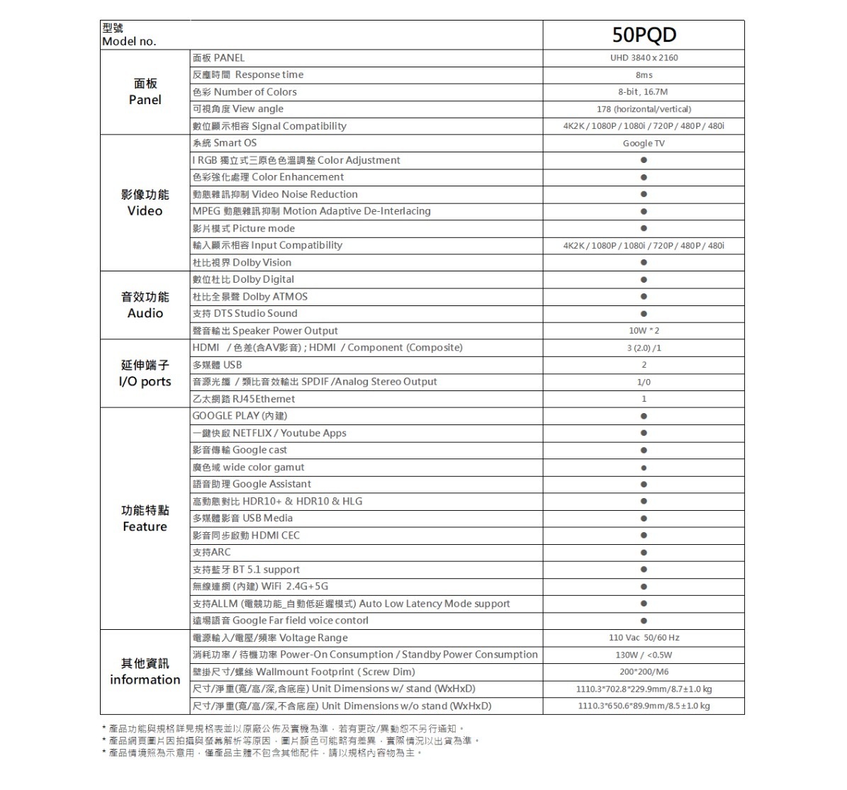 解析度支援:4K2K / 1080P / 1080i / 720P / 480P / 480
