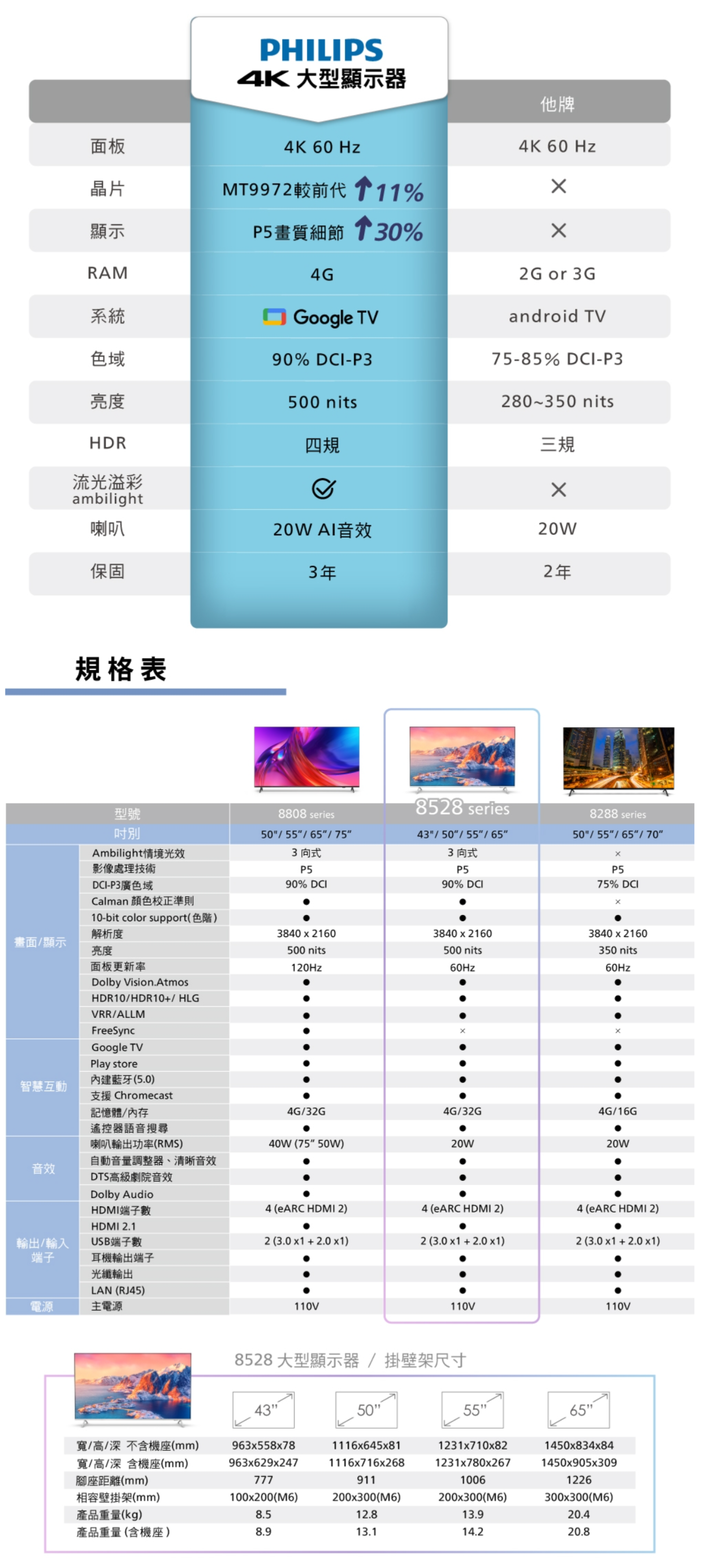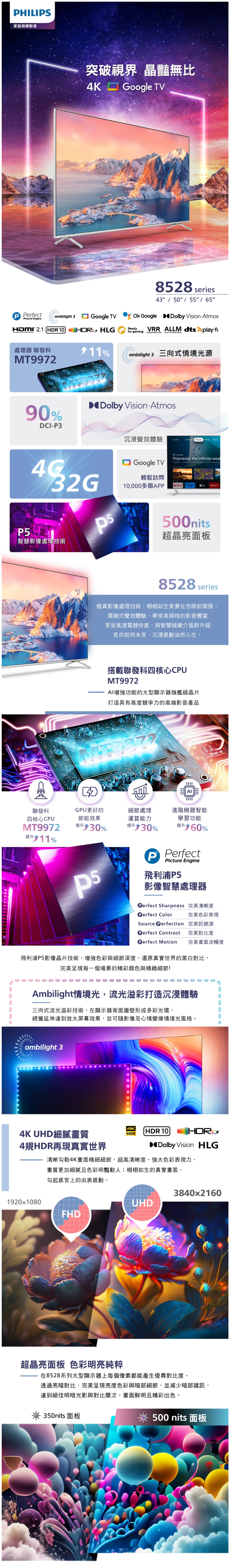 PHILIPS 飛利浦 55吋 4K 超晶亮 Google TV 智慧聯網液晶顯示器(55PUH8528)