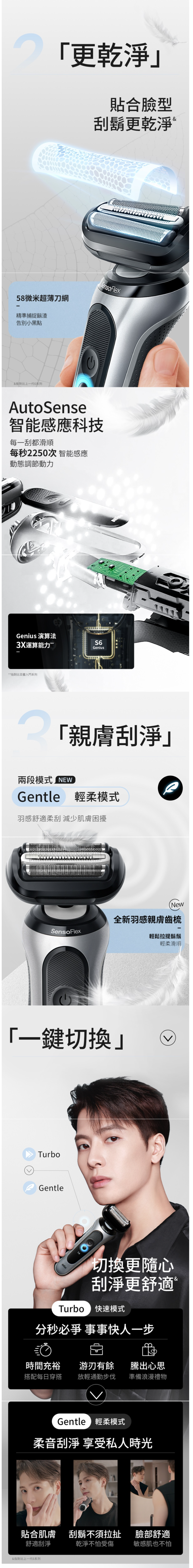 創新雙段速,預設輕柔Gentle模式,適合敏感肌