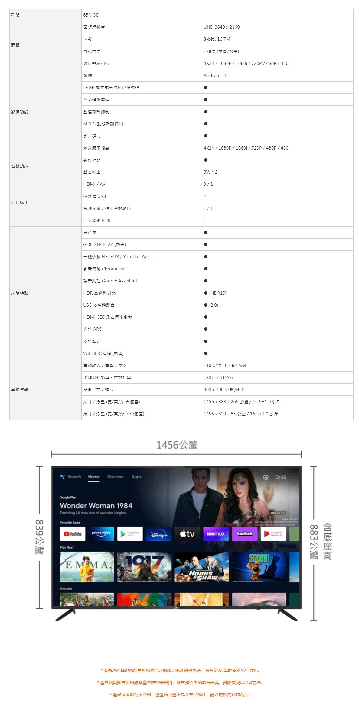 內建 GOOGLE PLAY、NETFLIX、YOUTUBE