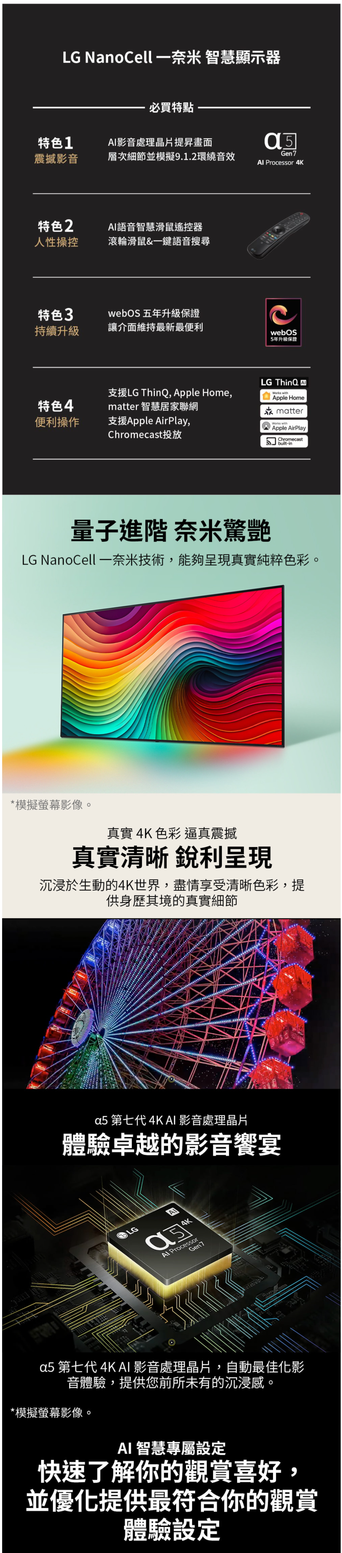 獨家NanoCell一奈米技術能呈現純淨真實色彩