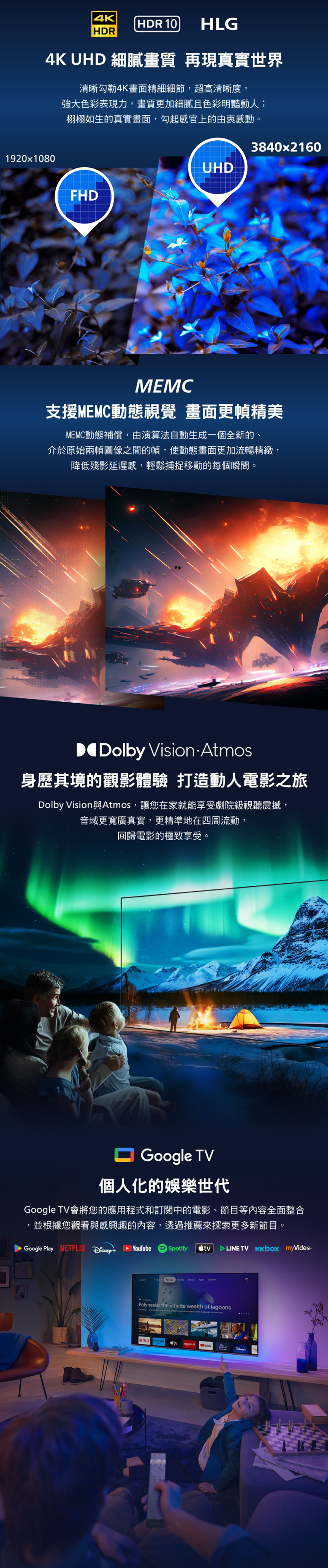 支援HDR10、HLG、MEMC動態補償、Dolby Vision Atmos