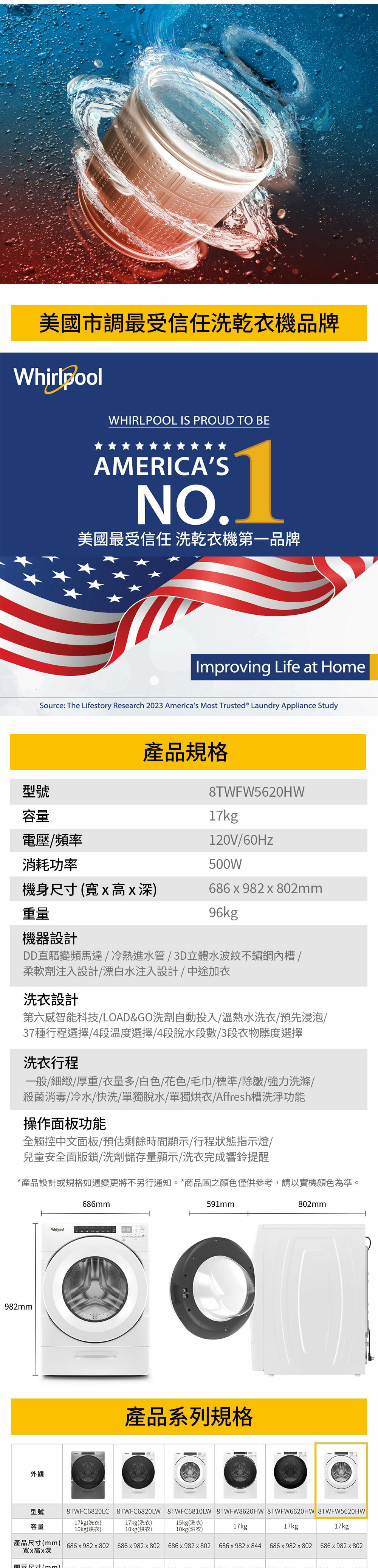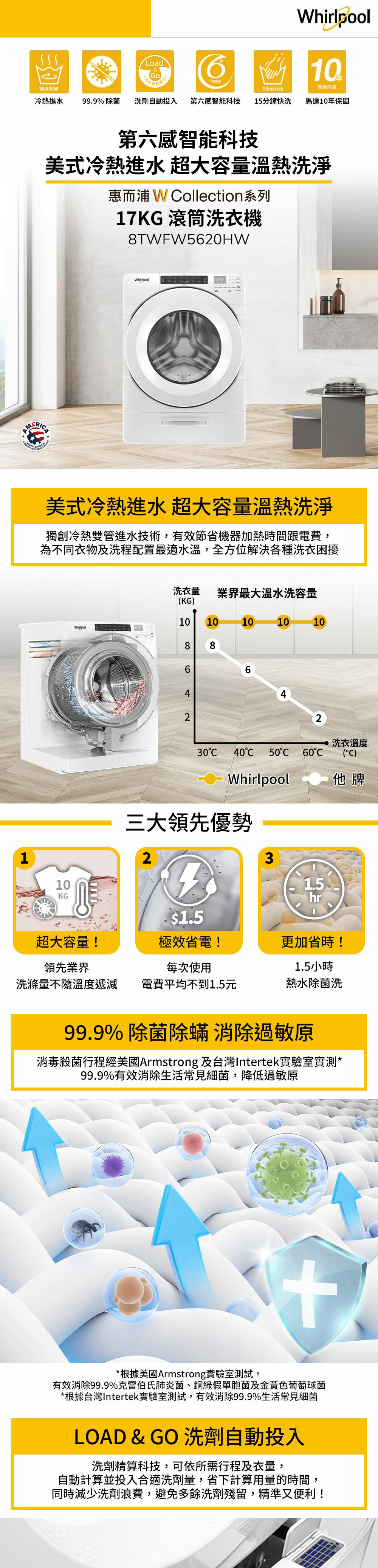 美式冷熱進水 超大容量溫熱水洗淨