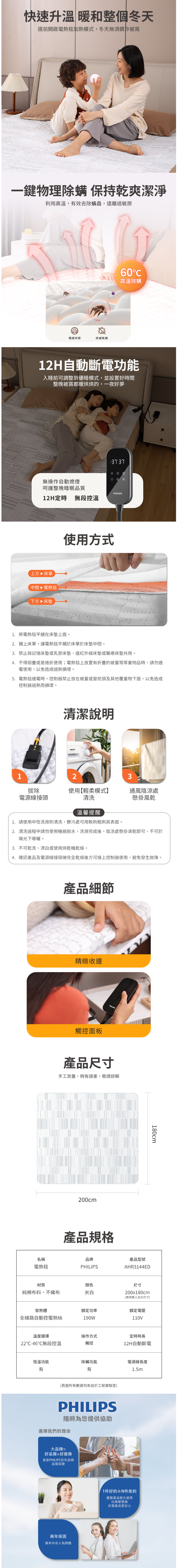 一鍵物理除菌,保持電毯乾燥潔淨