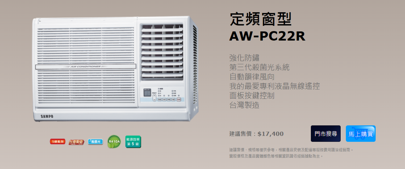 SAMPO 聲寶 3坪 定頻右吹窗型冷氣(AW-PC22R)