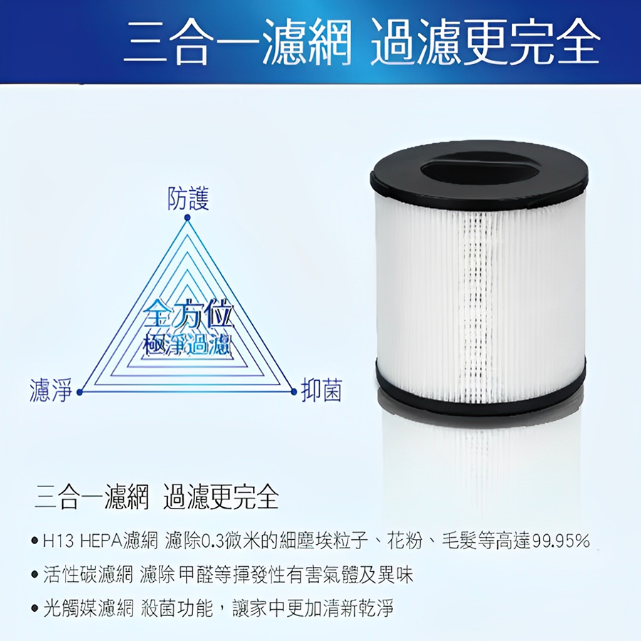 三合一濾網(HEPA+活性碳+光觸媒)