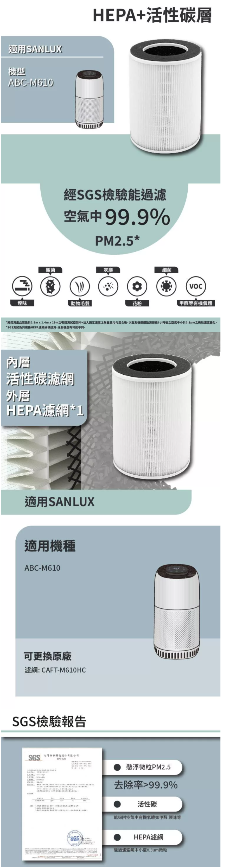 適用機型 SANLUX 三洋 空氣清凈機 ABC-M610