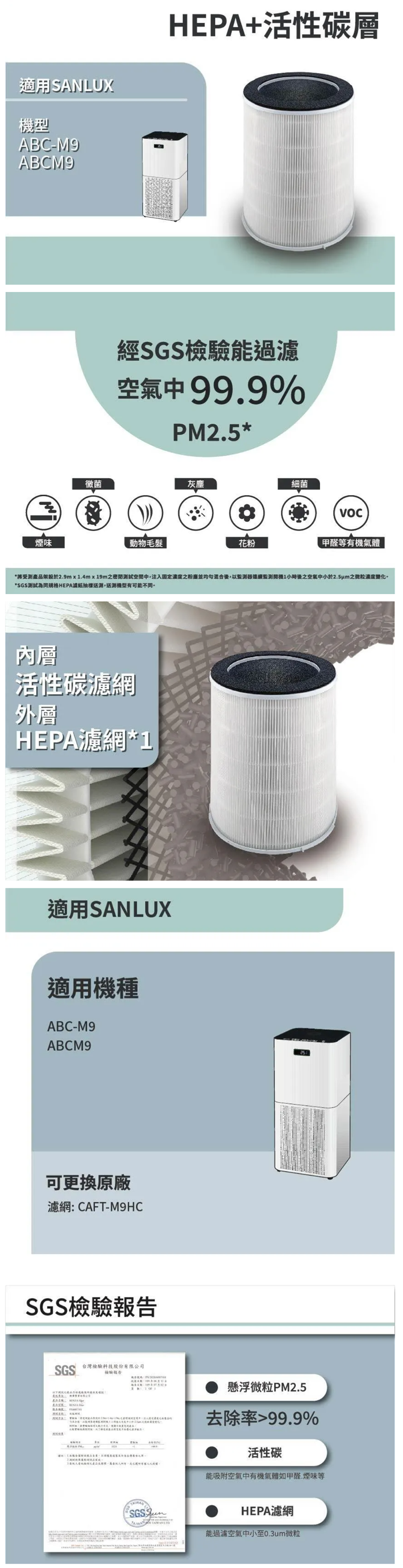 適用機型 SANLUX 三洋空氣清凈機ABC-M9