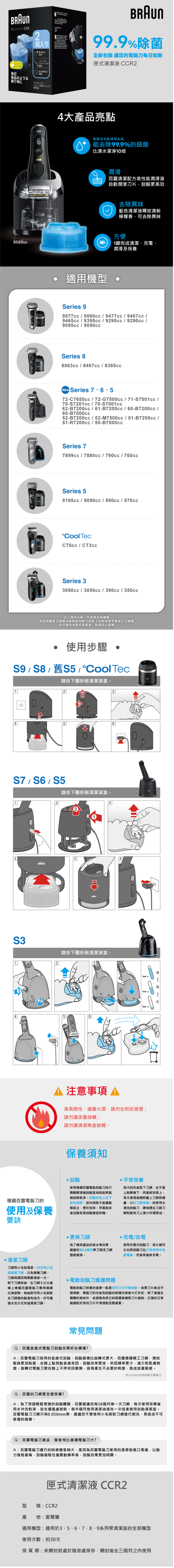 適用型號:德國百靈電鬍刀附【自動清潔充電座】之機種