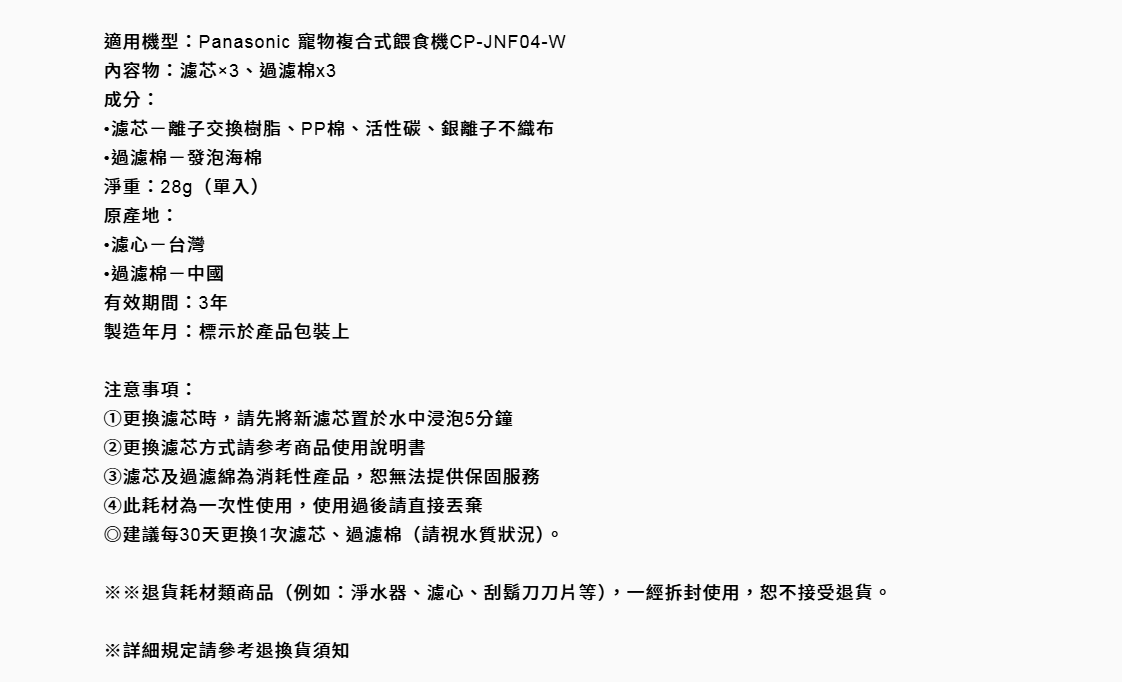 適用機種寵物複合式餵食機(CP-JNF04-W)