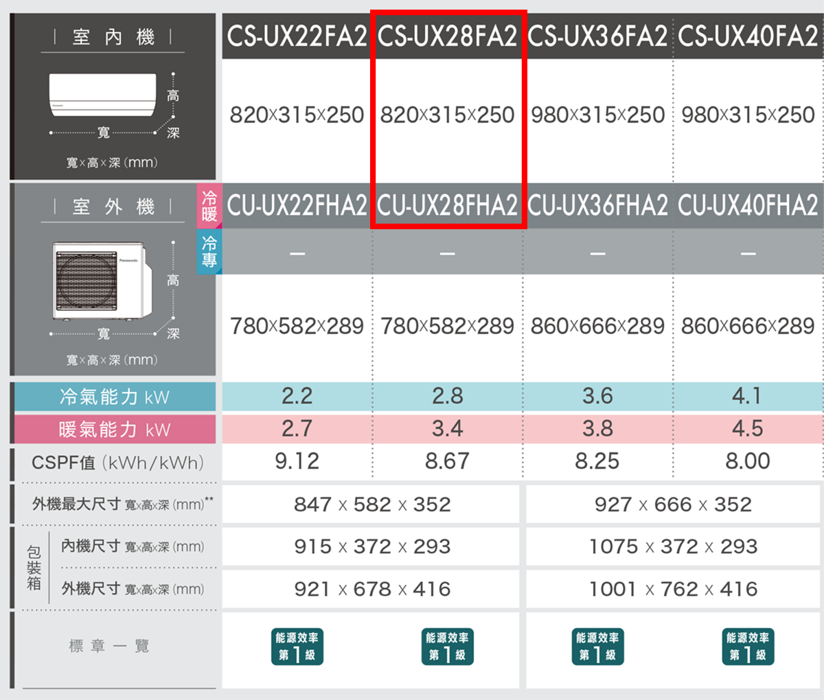 (可議價)Panasonic 國際牌 3-4坪 UX頂級旗艦 變頻(冷暖)一對一冷氣(CS-UX28FA2+CU-UX28FHA2)
