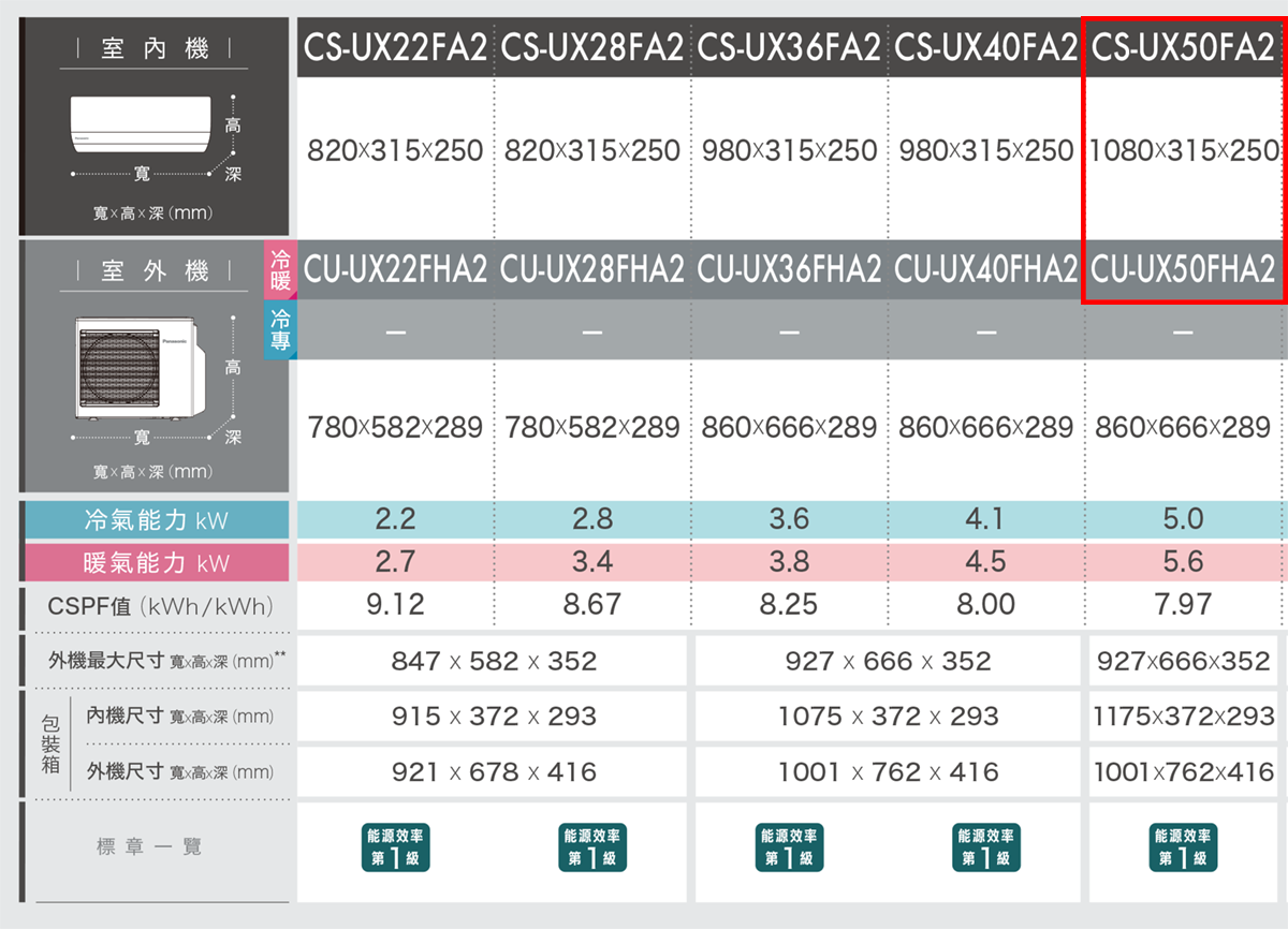 (可議價)Panasonic 國際牌 6-8坪 UX頂級旗艦 變頻(冷暖)一對一冷氣(CS-UX50FA2+CU-UX50FHA2)