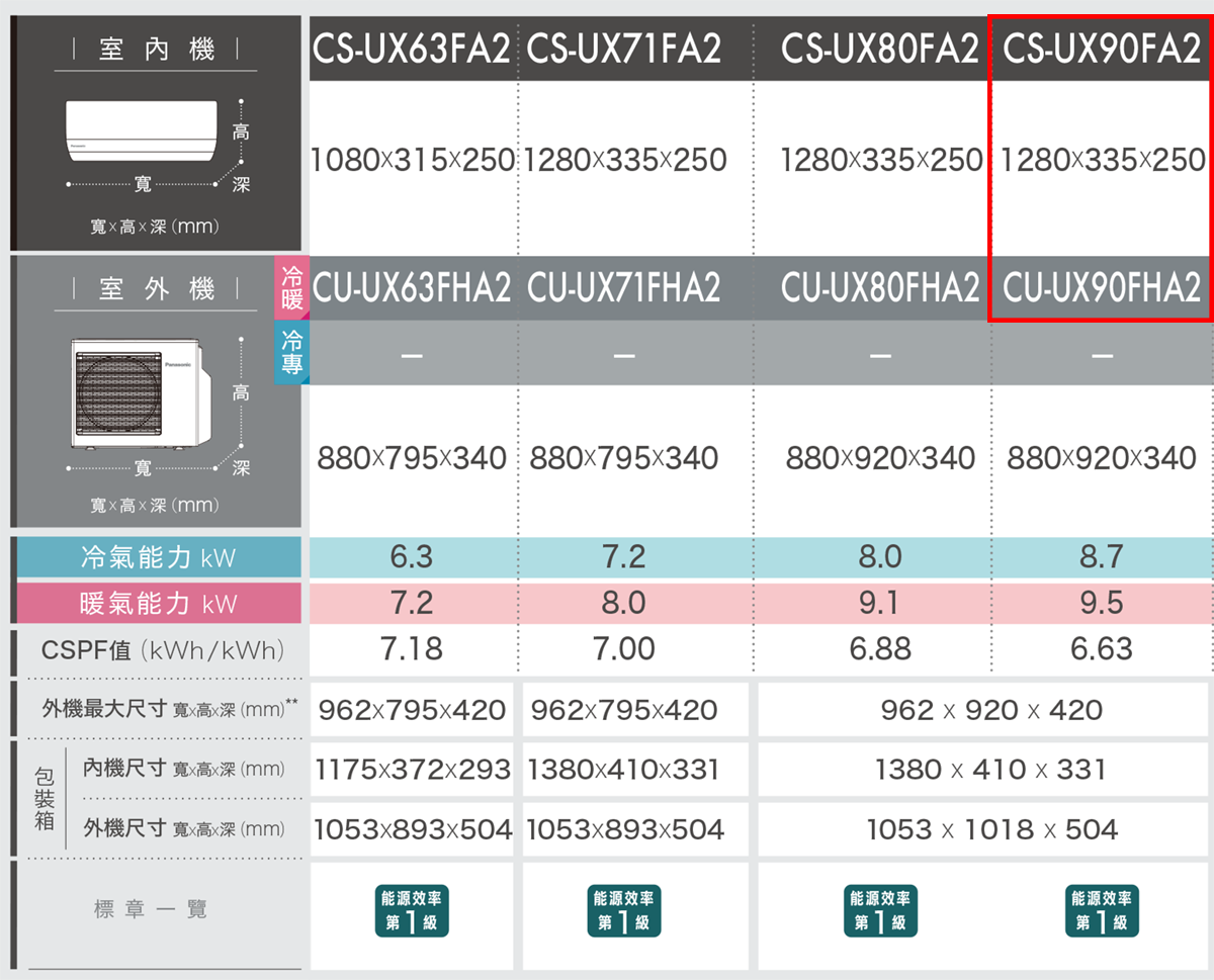 (可議價)Panasonic 國際牌 12-18坪 UX頂級旗艦 變頻(冷暖)一對一冷氣(CS-UX90FA2+CU-UX90FHA2)