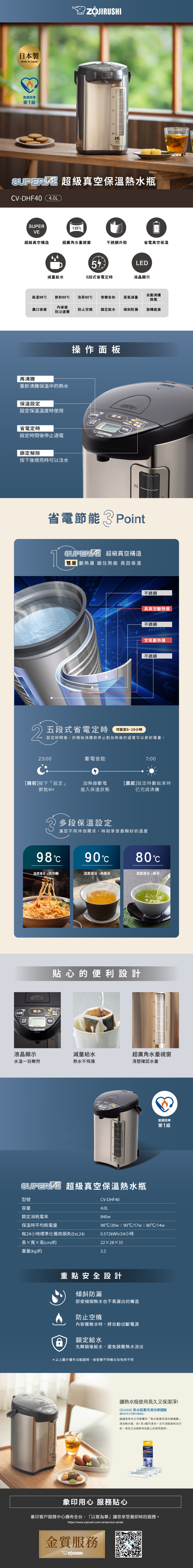 4段保溫設定(98℃、90℃、80℃、真空保溫)