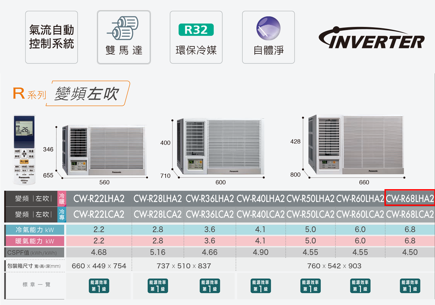Panasonic 國際牌 10坪 R系列 變頻(冷暖左吹)窗型冷氣(CW-R68LHA2)