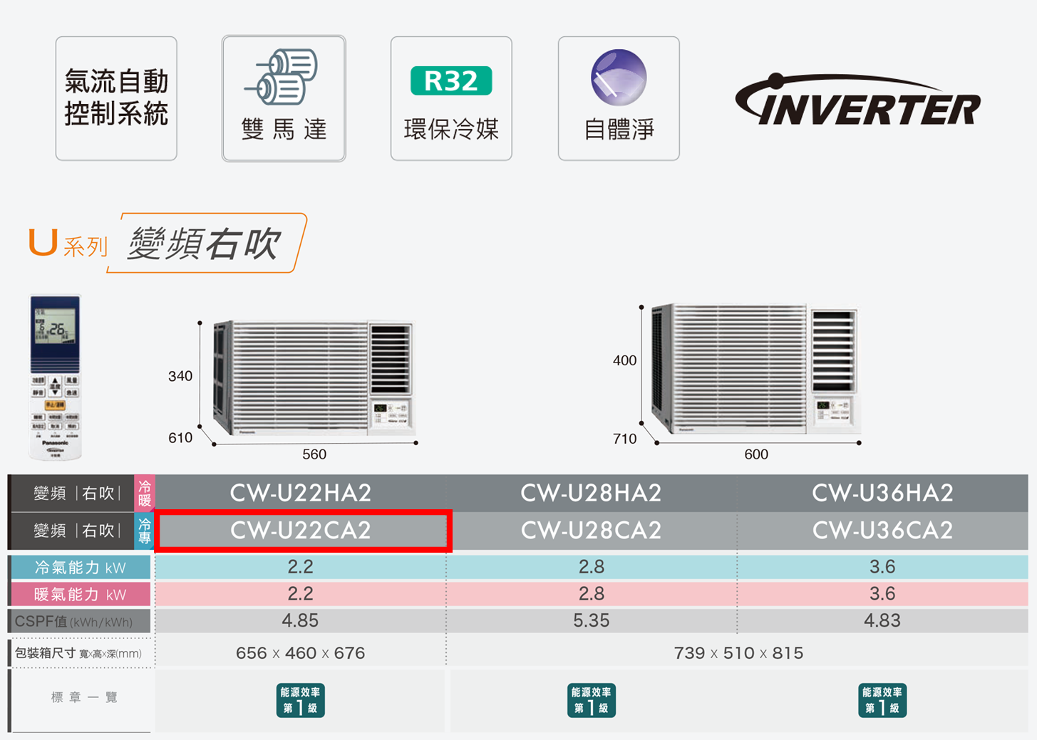 Panasonic 國際牌 2坪 U系列 變頻(冷專右吹)窗型冷氣(CW-U22CA2)