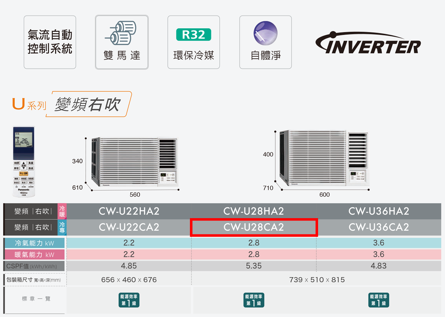Panasonic 國際牌 4坪 U系列 變頻(冷專右吹)窗型冷氣(CW-U28CA2)