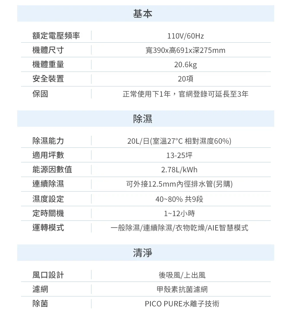 20L除溼力