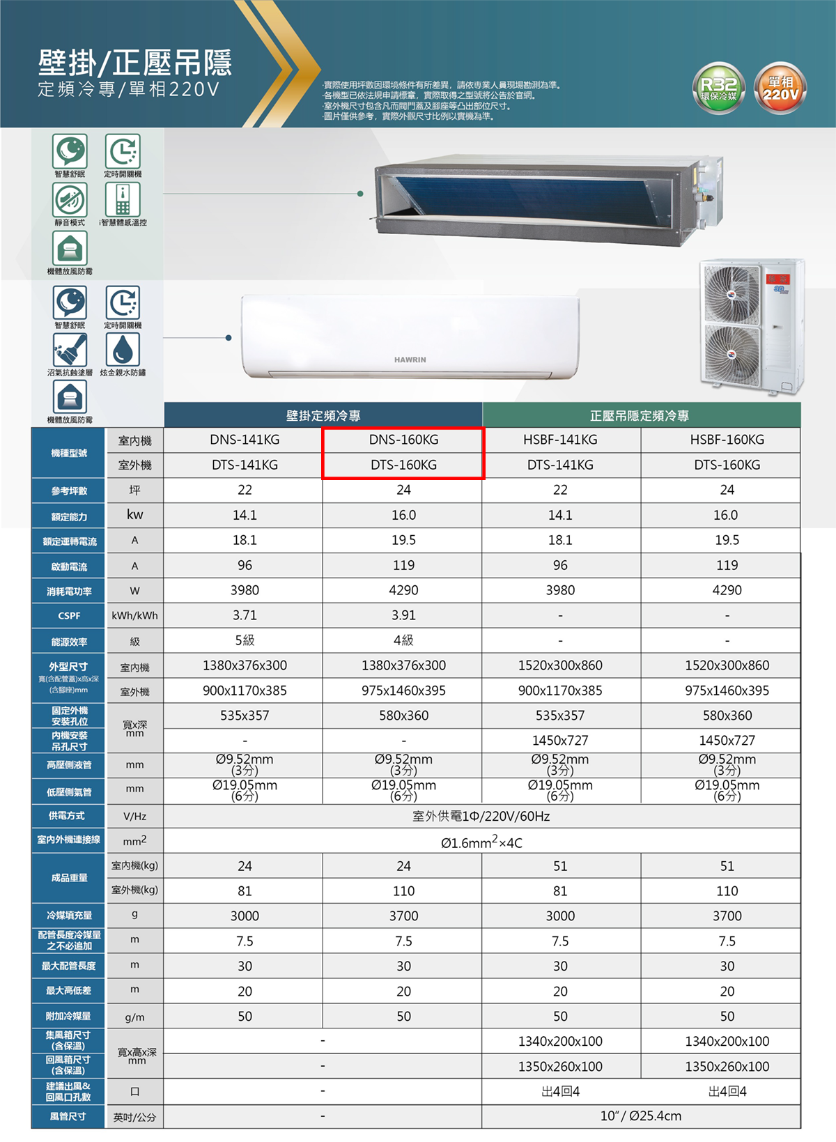 (可議價)HAWRIN 華菱 24-26坪 定頻(冷專)一對一冷氣(DTS-160KG+DNS-160KG)