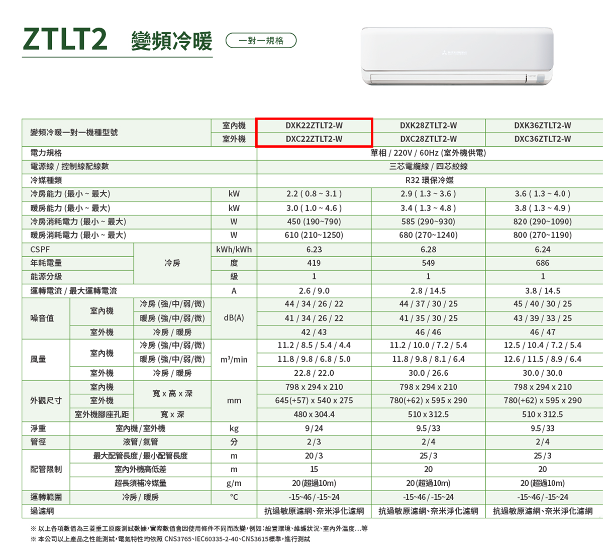 (可議價)MITSUBISHI 三菱重工 2-4坪 朝日ZTLT2(冷暖)變頻一對一空調(DXC22ZTLT2-W+DXK22ZTLT2-W)