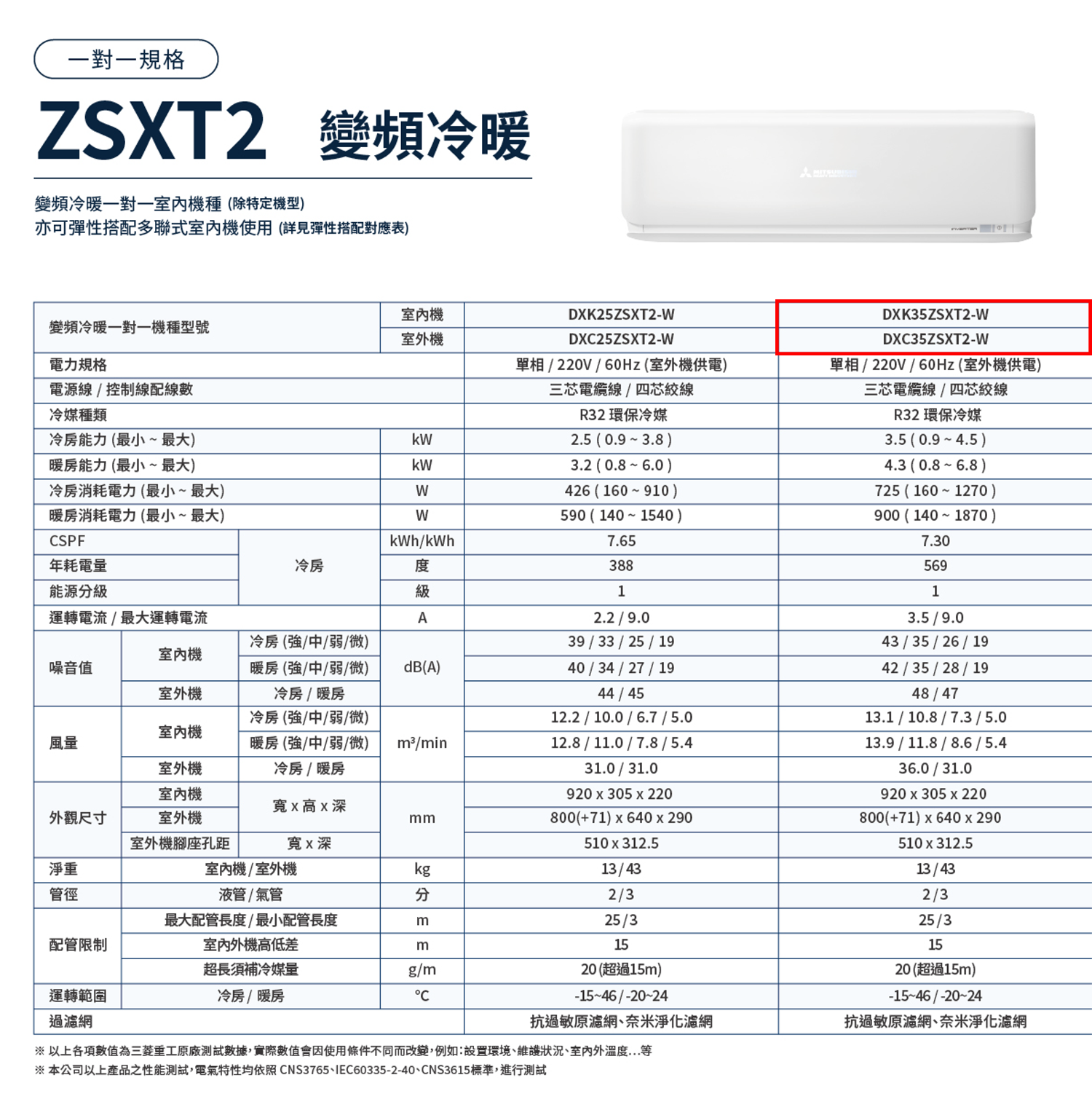 (可議價)MITSUBISHI 三菱重工 3-5坪 未來ZSXT(冷暖)變頻一對一空調(DXC35ZSXT2-W+DXK35ZSXT2-W)