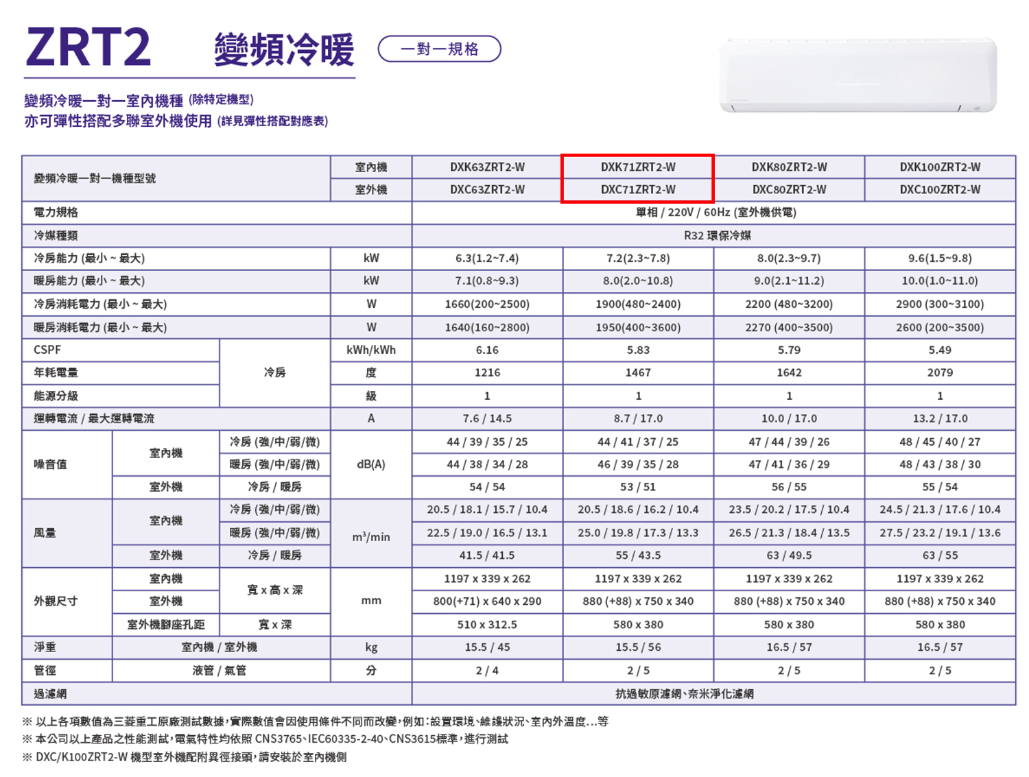 (可議價)MITSUBISHI 三菱重工 10-12坪 晴空ZRT2(冷暖)變頻一對一空調(DXC71ZRT2-W+DXK71ZRT2-W)