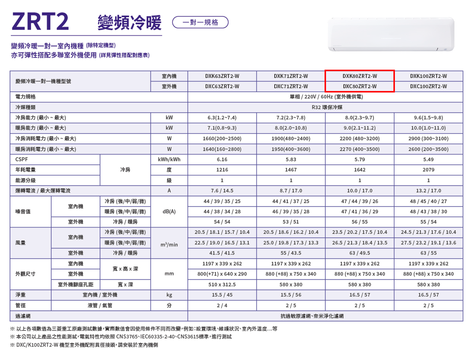 (可議價)MITSUBISHI 三菱重工 12-15坪 晴空ZRT2(冷暖)變頻一對一空調(DXC80ZRT2-W+DXK80ZRT2-W)