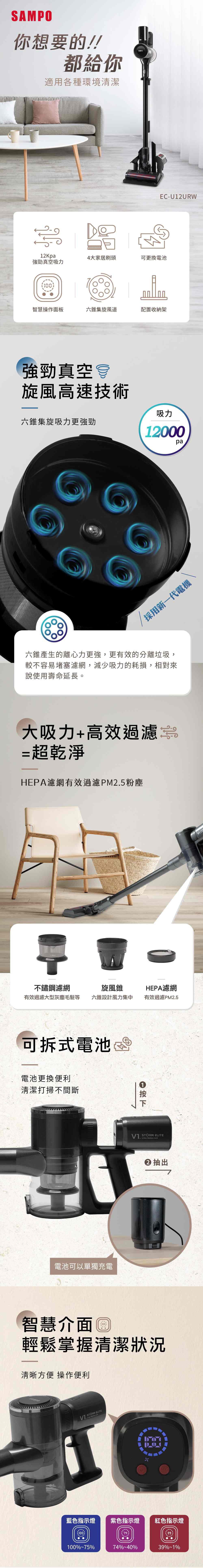 LED面板顯示,剩餘電量、吸力段數隨時掌握