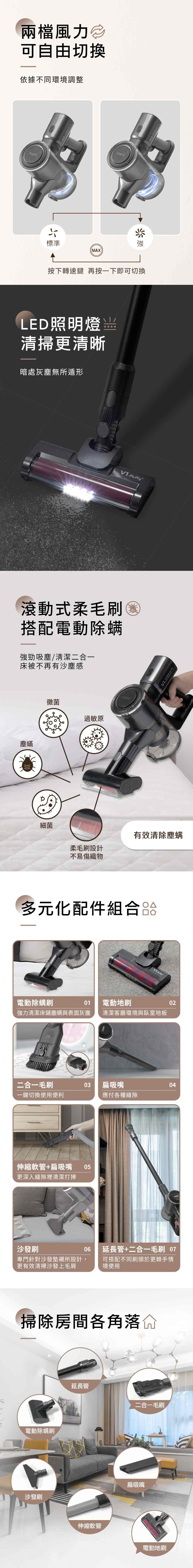 附獨立電機除螨刷,高速轉動滾刷設計