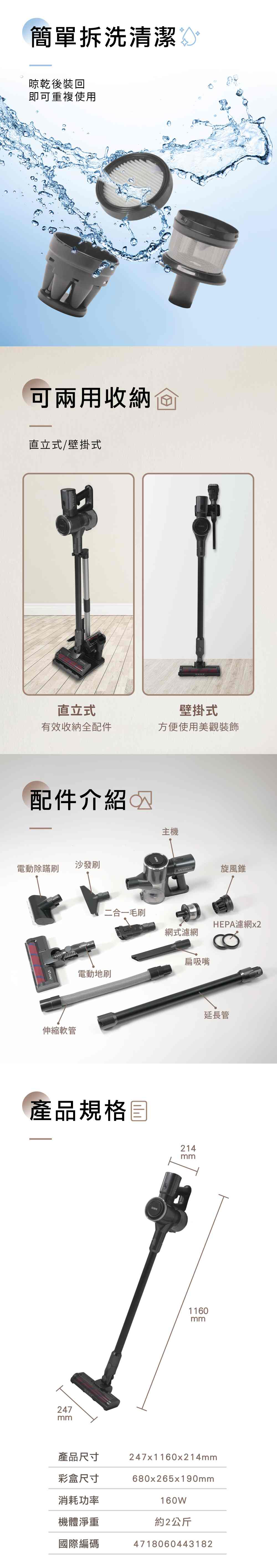 升級可拆式絨毛滾刷,毛髮不易卡、粉塵吸附力更強