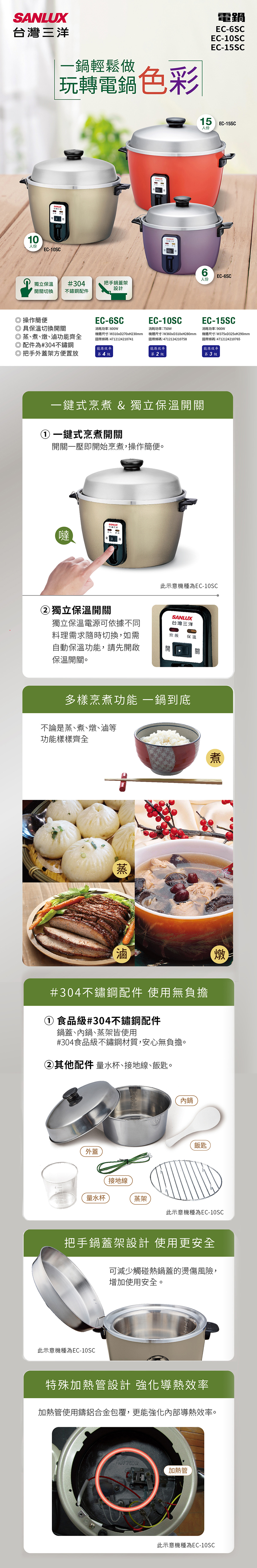 配件為#304不鏽鋼(外蓋/內鍋/蒸架)