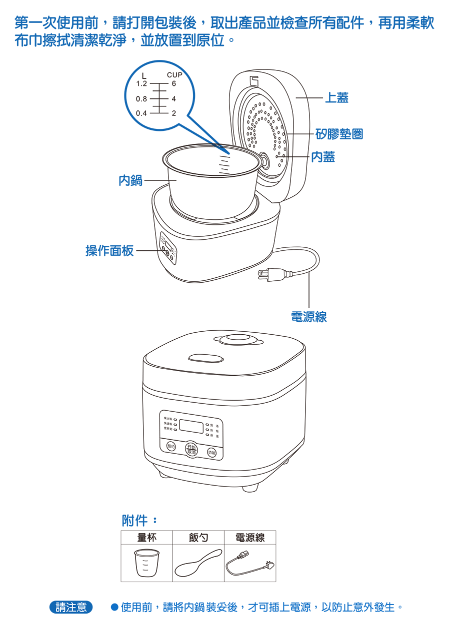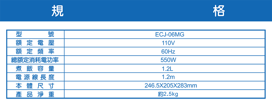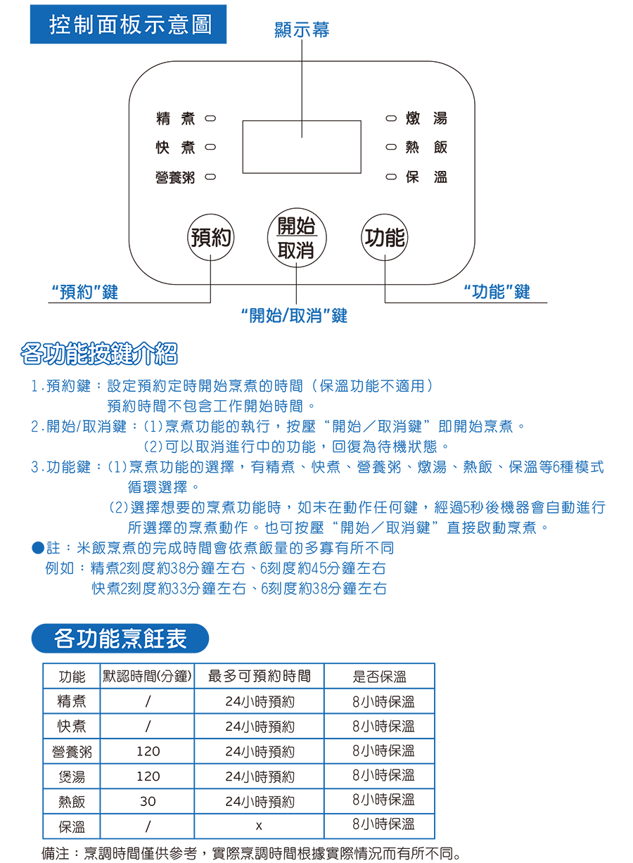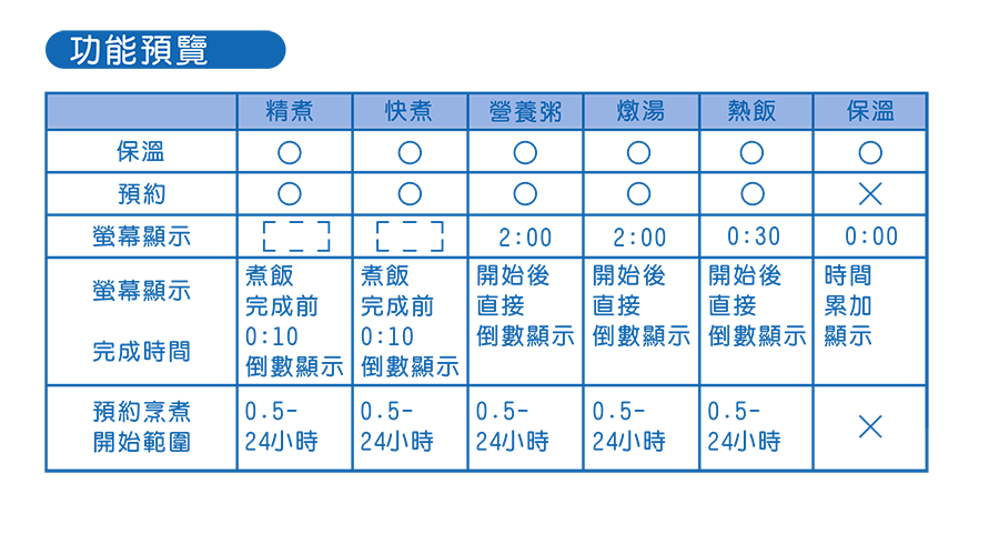 6種烹煮行程:精煮/快煮/營養粥/燉湯/熱飯/保溫