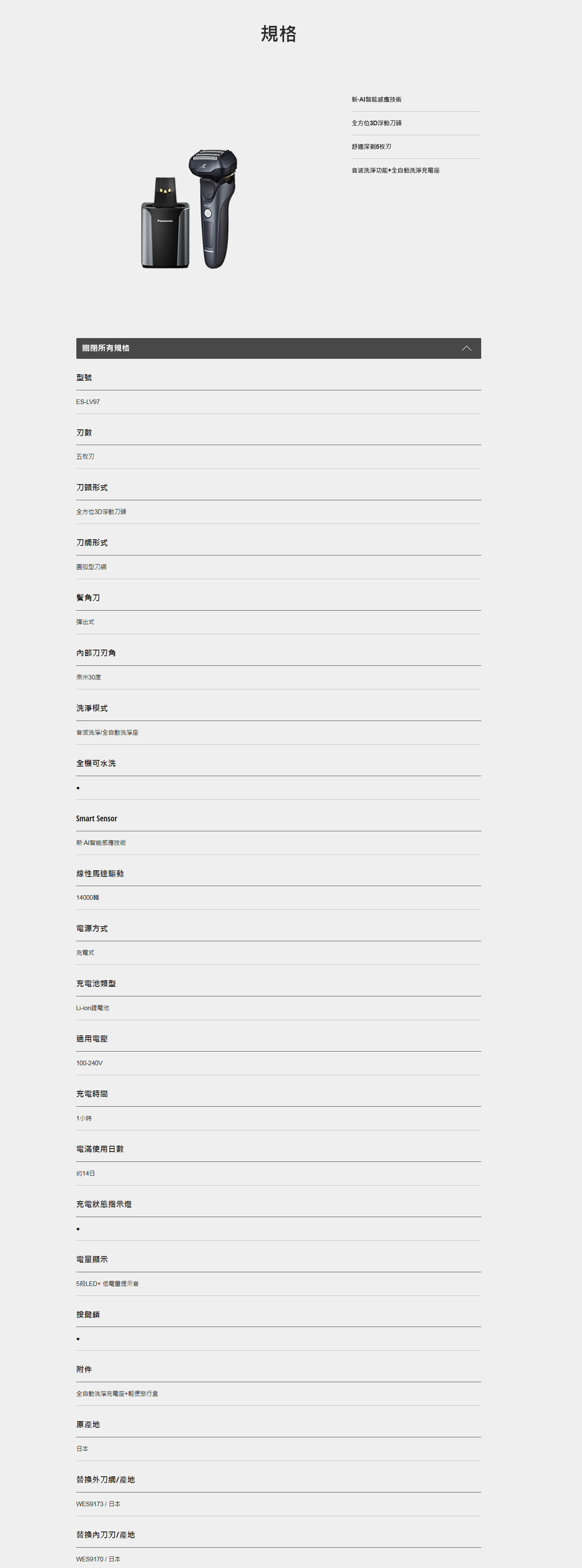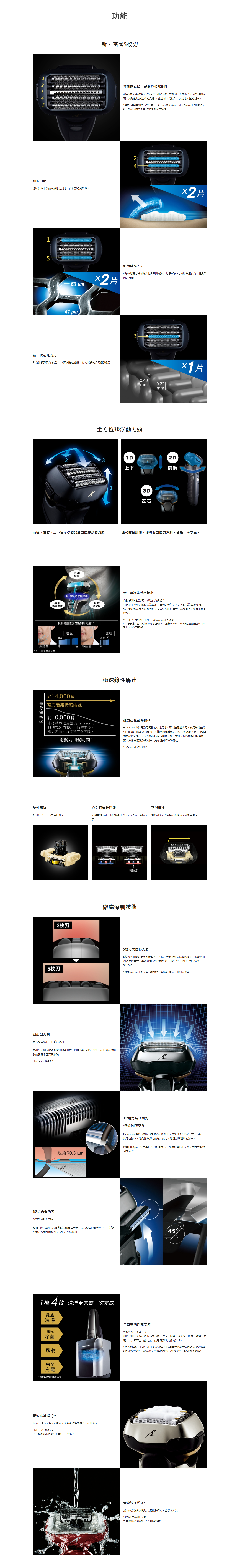奈米30度銳角內刃、5段電量LED面板、音波洗淨模式