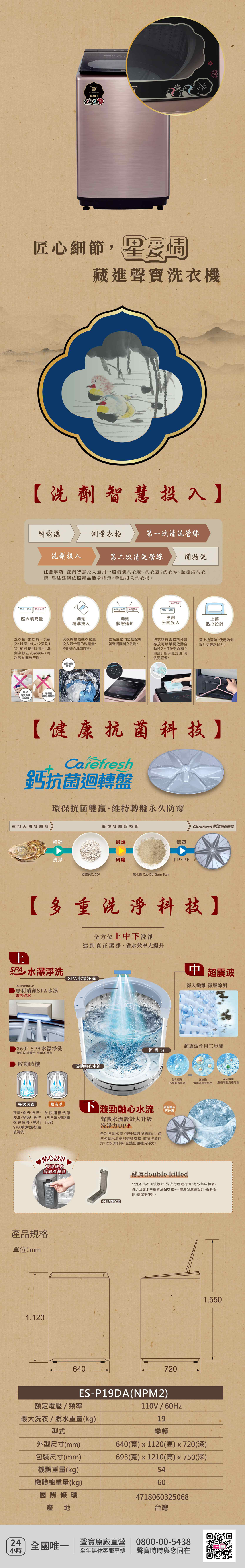 SAMPO 聲寶 故宮聯名款 19公斤 洗劑智慧投入變頻洗衣機-荷花鴛鴦軸(ES-P19DA-NPM2)
