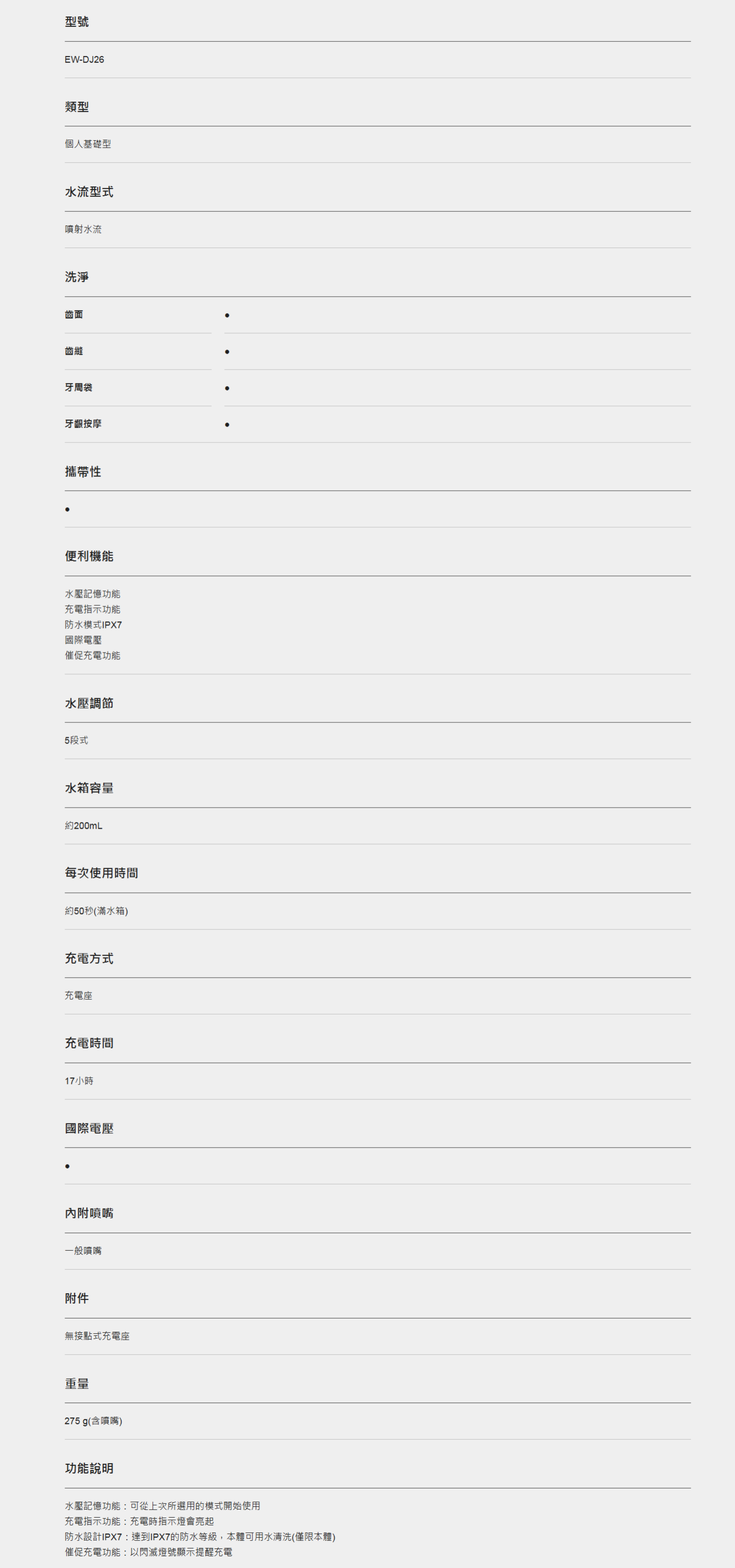 ● 水箱容量 200mL