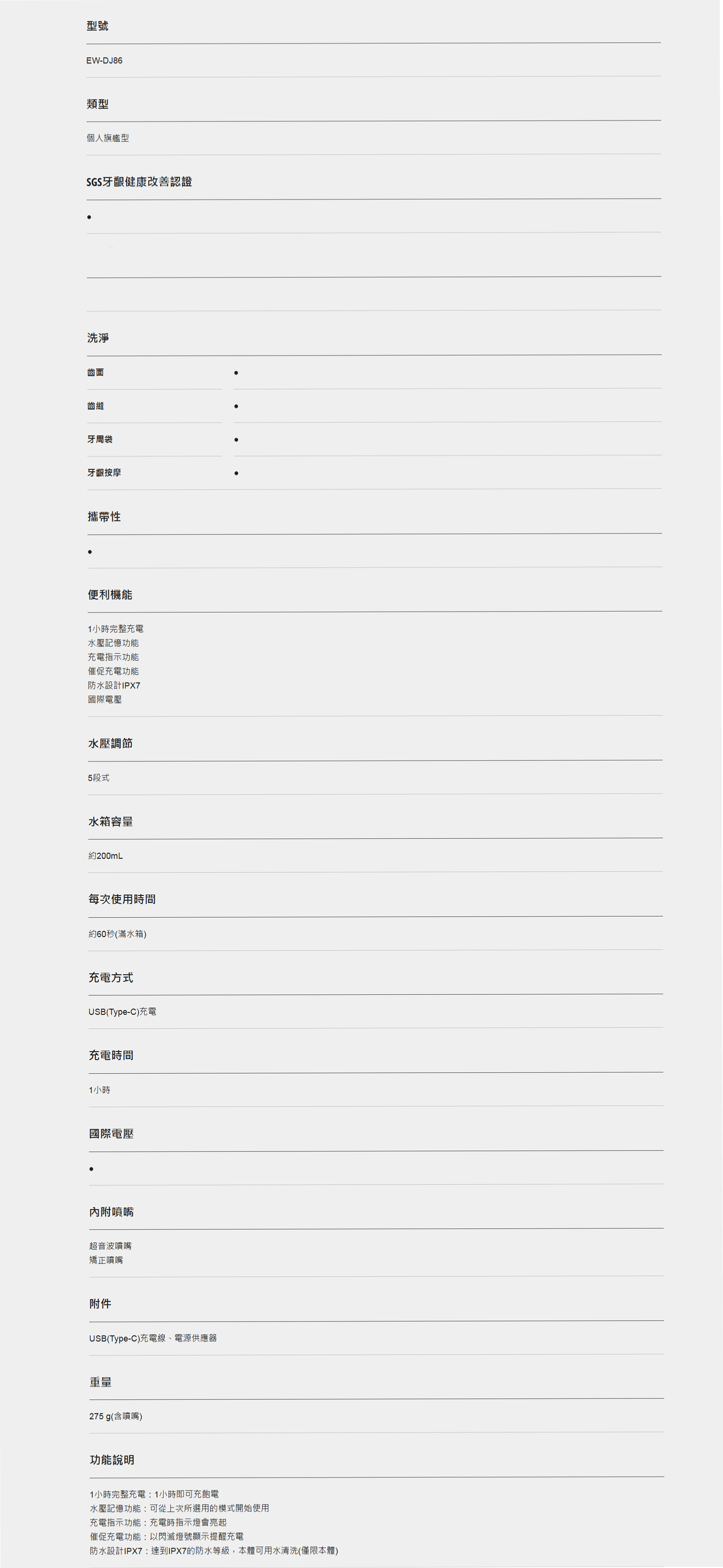 ● 水箱容量 200mL