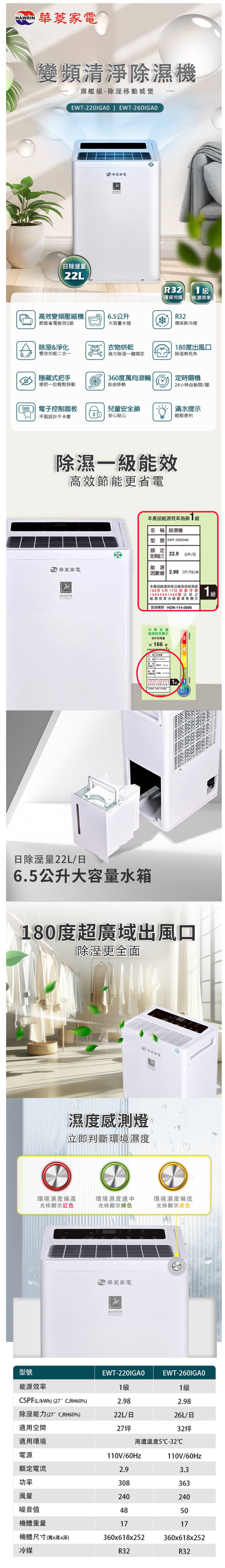 (可議價)HAWRIN 華菱 22L 變頻清淨除濕機(EWT-220IGA0)