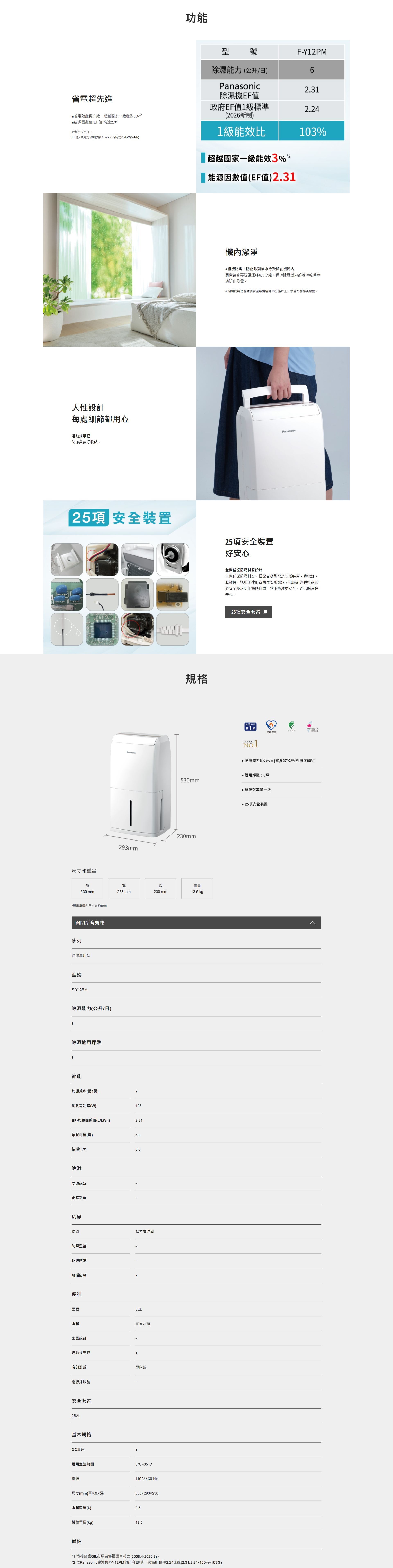 除濕能力 6公升/日(室溫27°C/相對濕度60%)