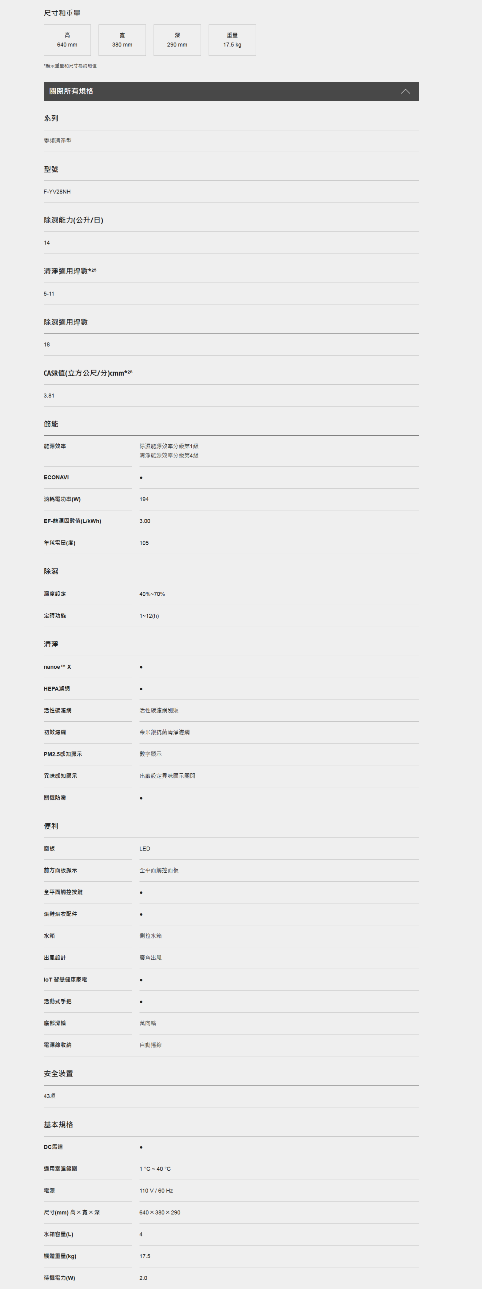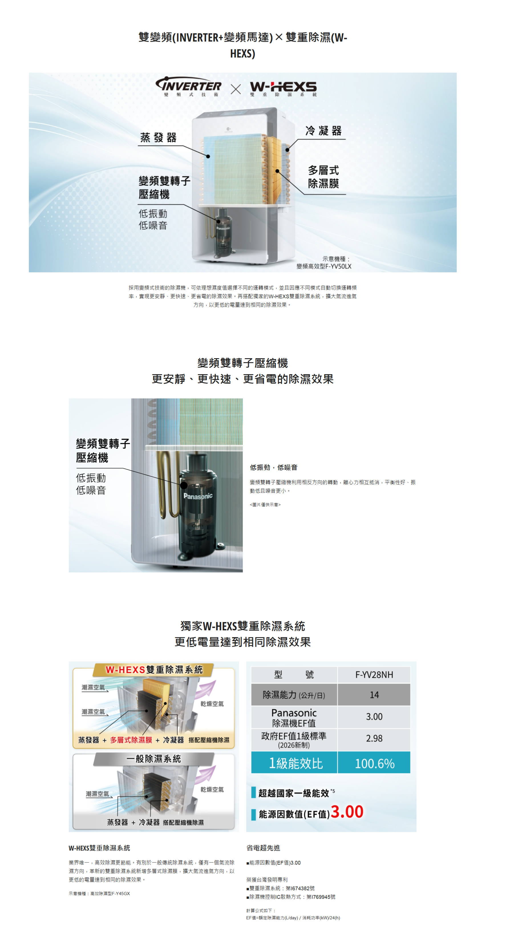 ● 除濕能力 14公升/日(室溫27°C/相對濕度60%)