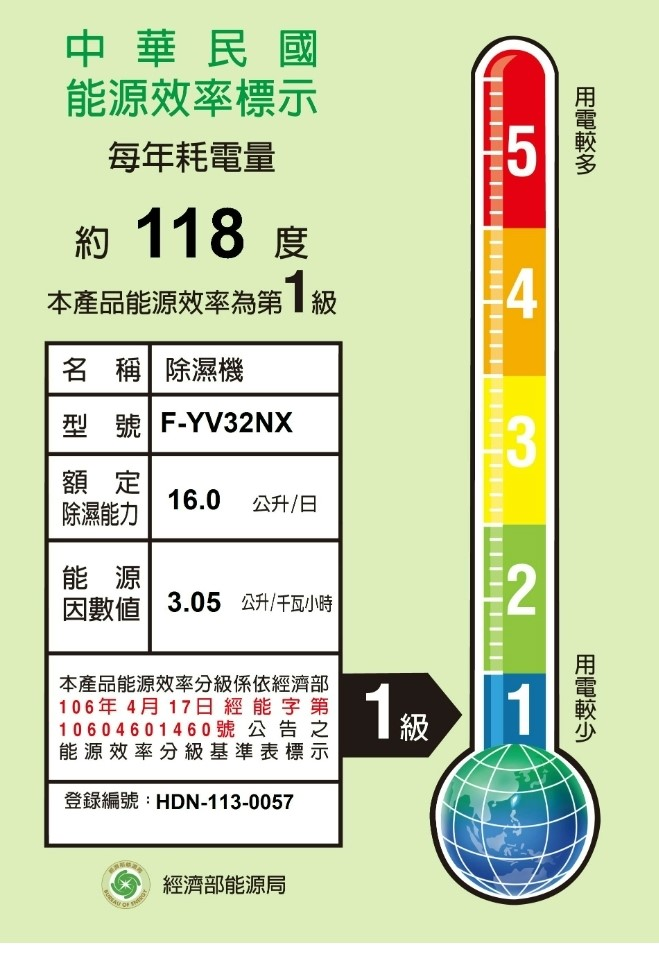 除濕能力 16公升/日(室溫27°C/相對濕度60%)
