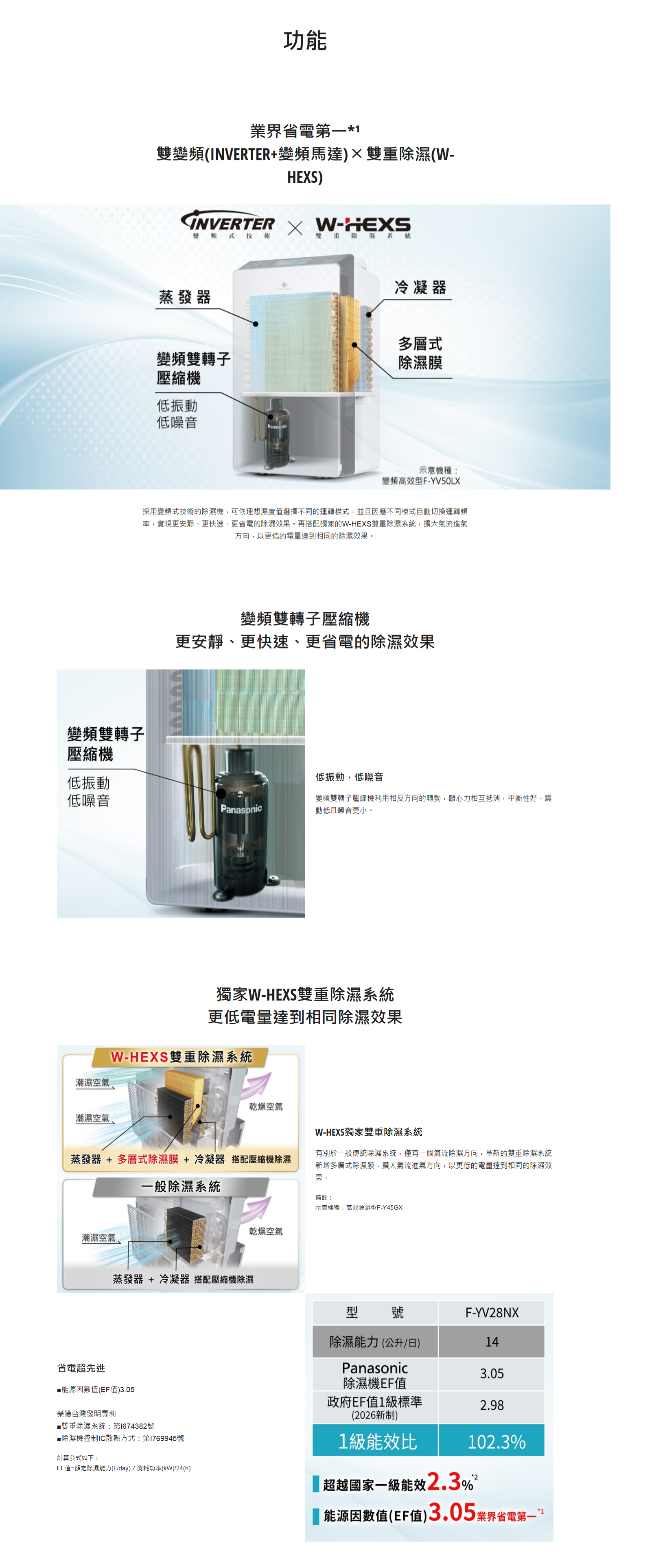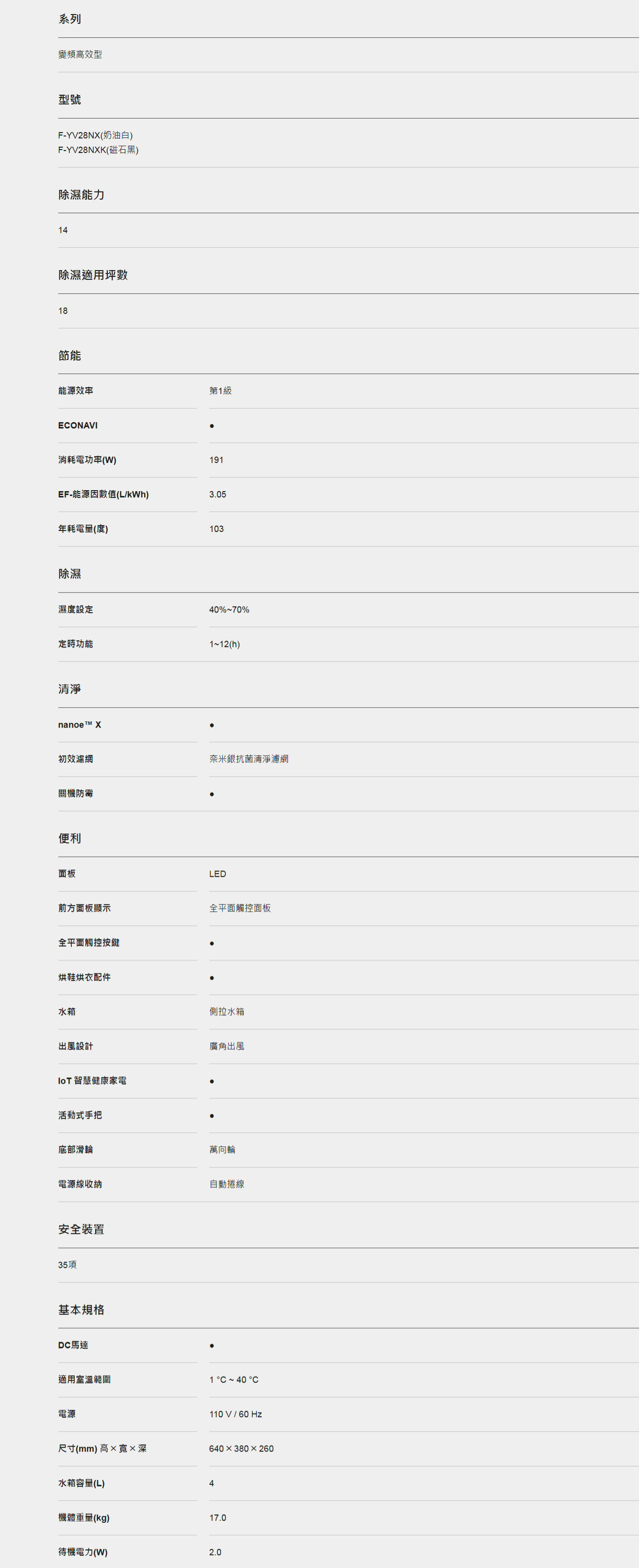 ● 除濕能力 14公升/日(室溫27°C/相對濕度60%)