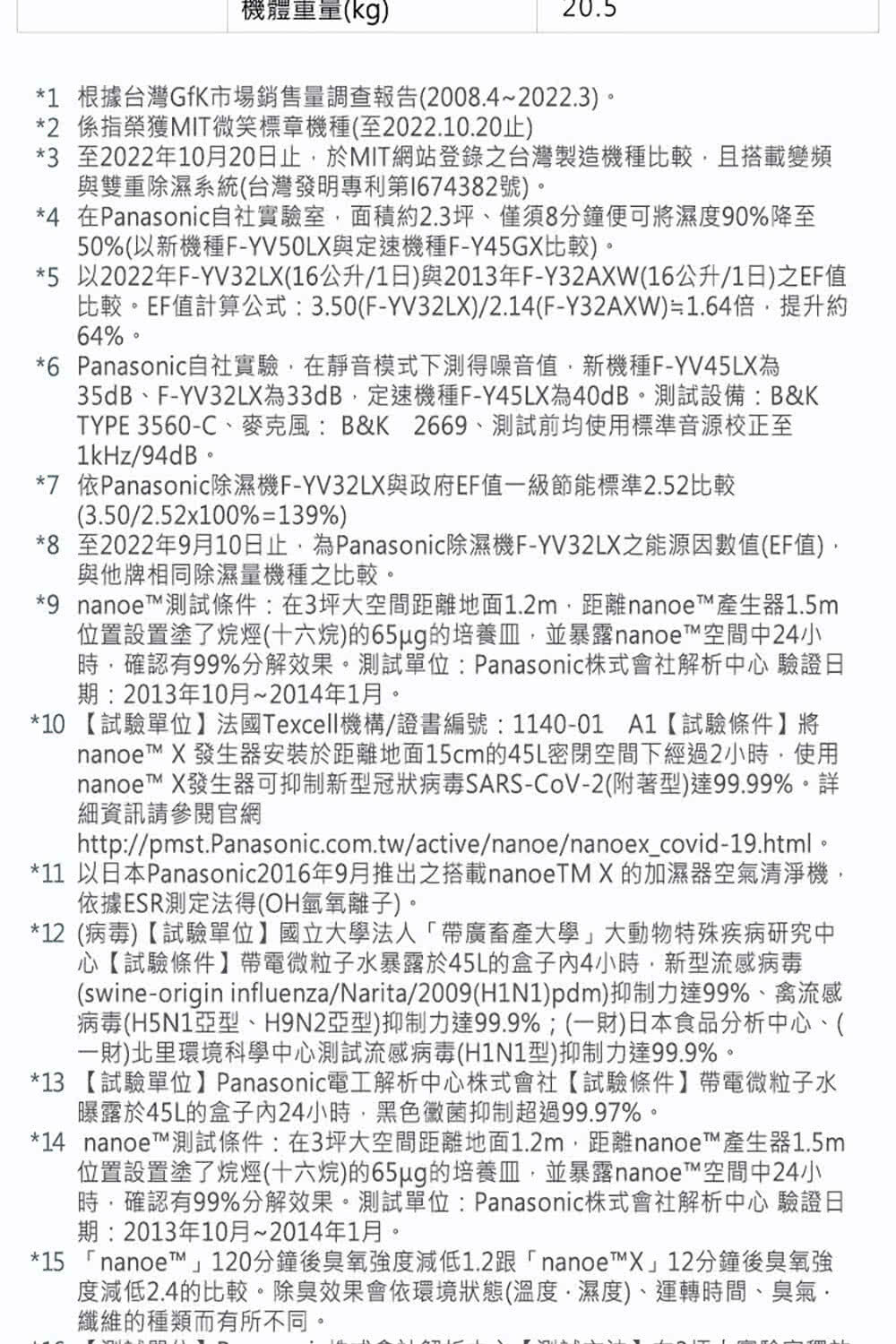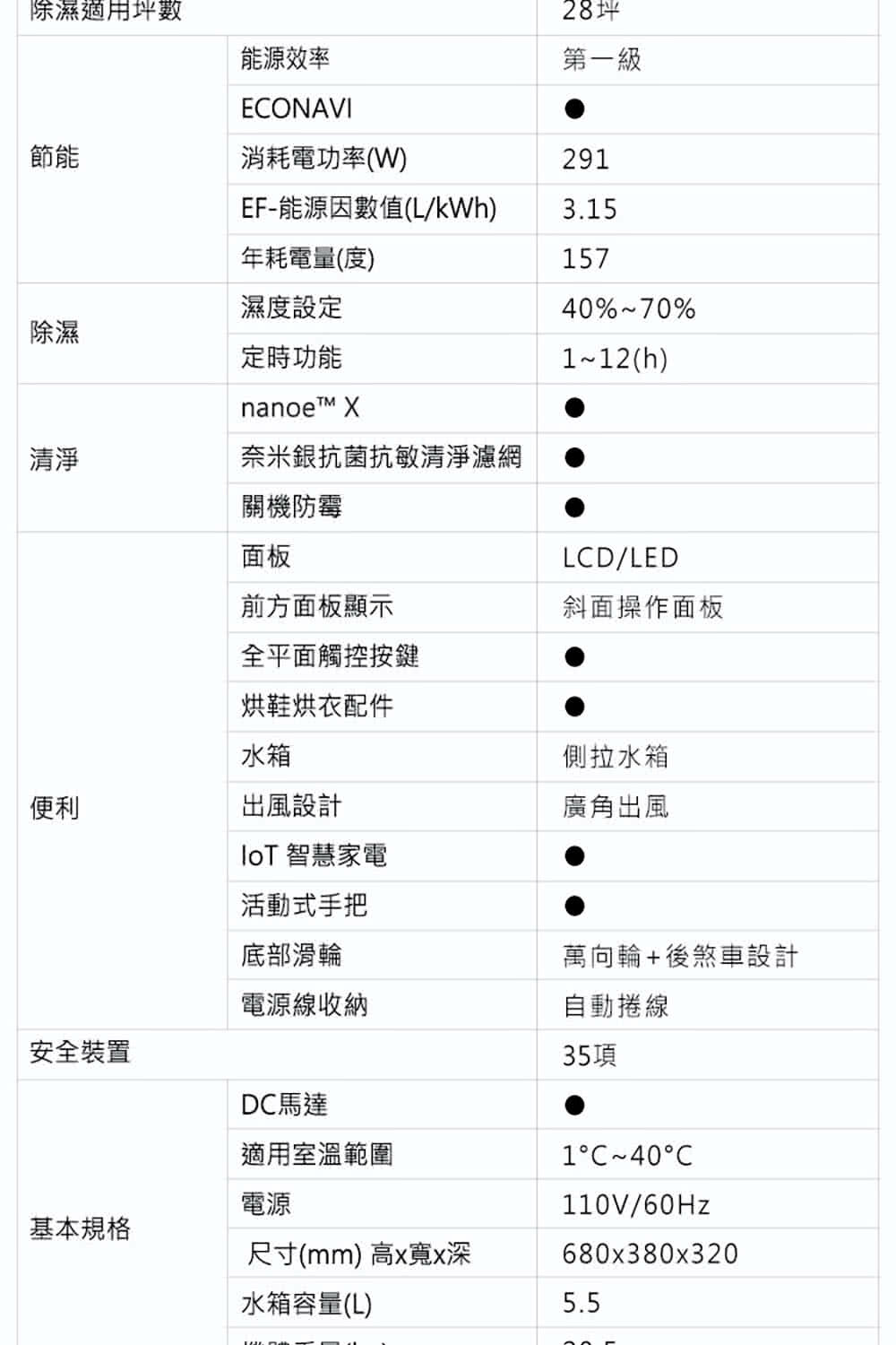 除濕能力 22公升/日(室溫27°C/相對濕度60%)