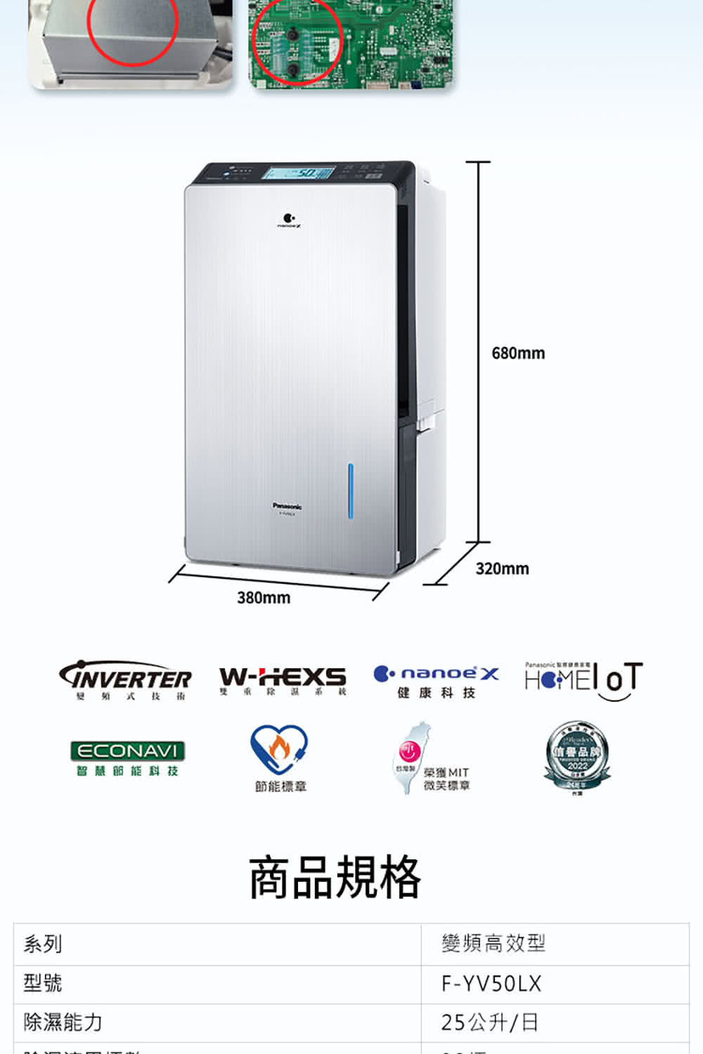 除濕能力 25公升/日(室溫27°C/相對濕度60%)