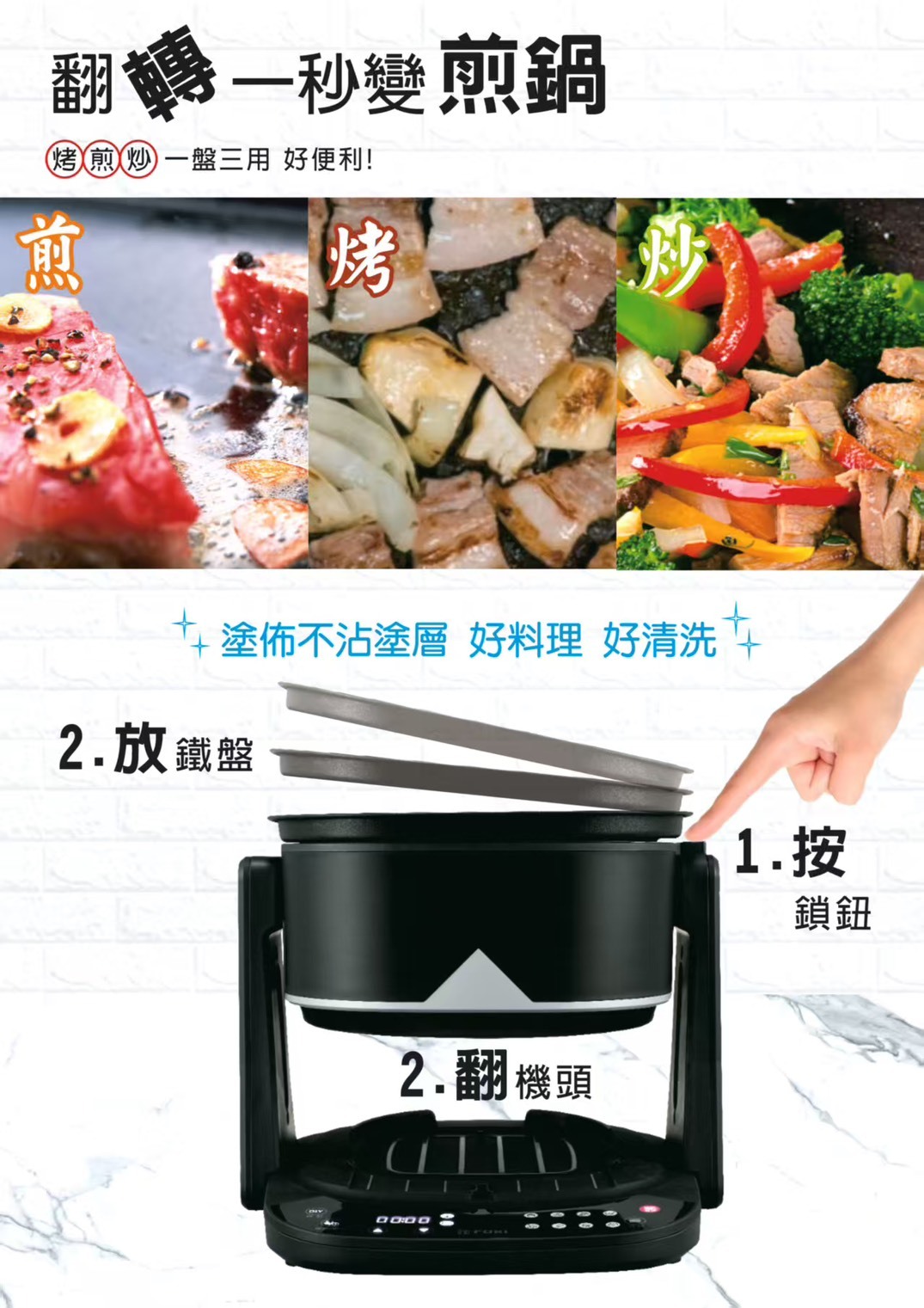 烤、煎、炒一盤三用好便利
